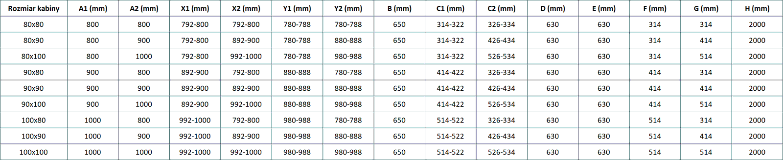 Size: 90x100 cm (right door 90 cm, wall 100 cm)