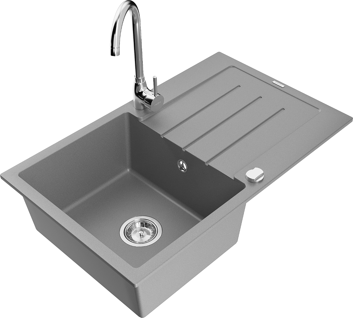 Mexen Bruno 1-bowl granite sink with drainer and Telma kitchen tap, grey - 6513-71-670200-00
