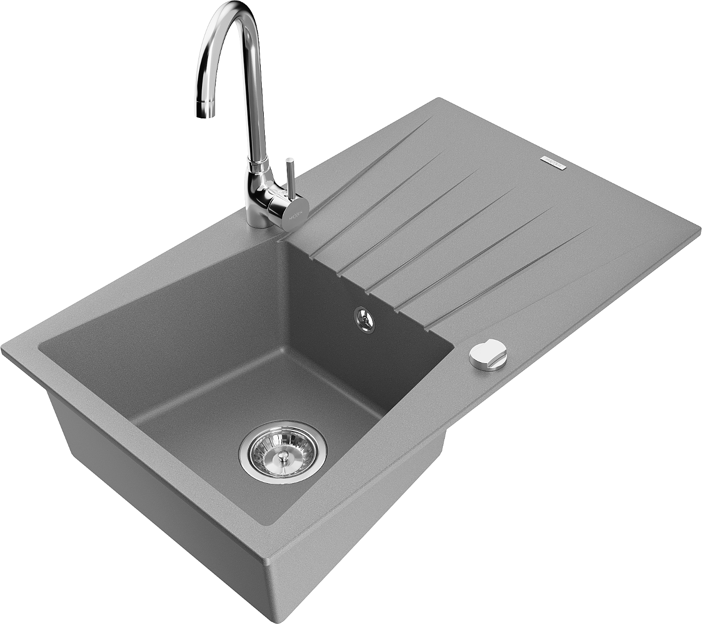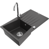 Mexen Cesar 1-compartment granite sink with a drip tray and kitchen mixer tap Telma, Grey - 6514-71-670200-00