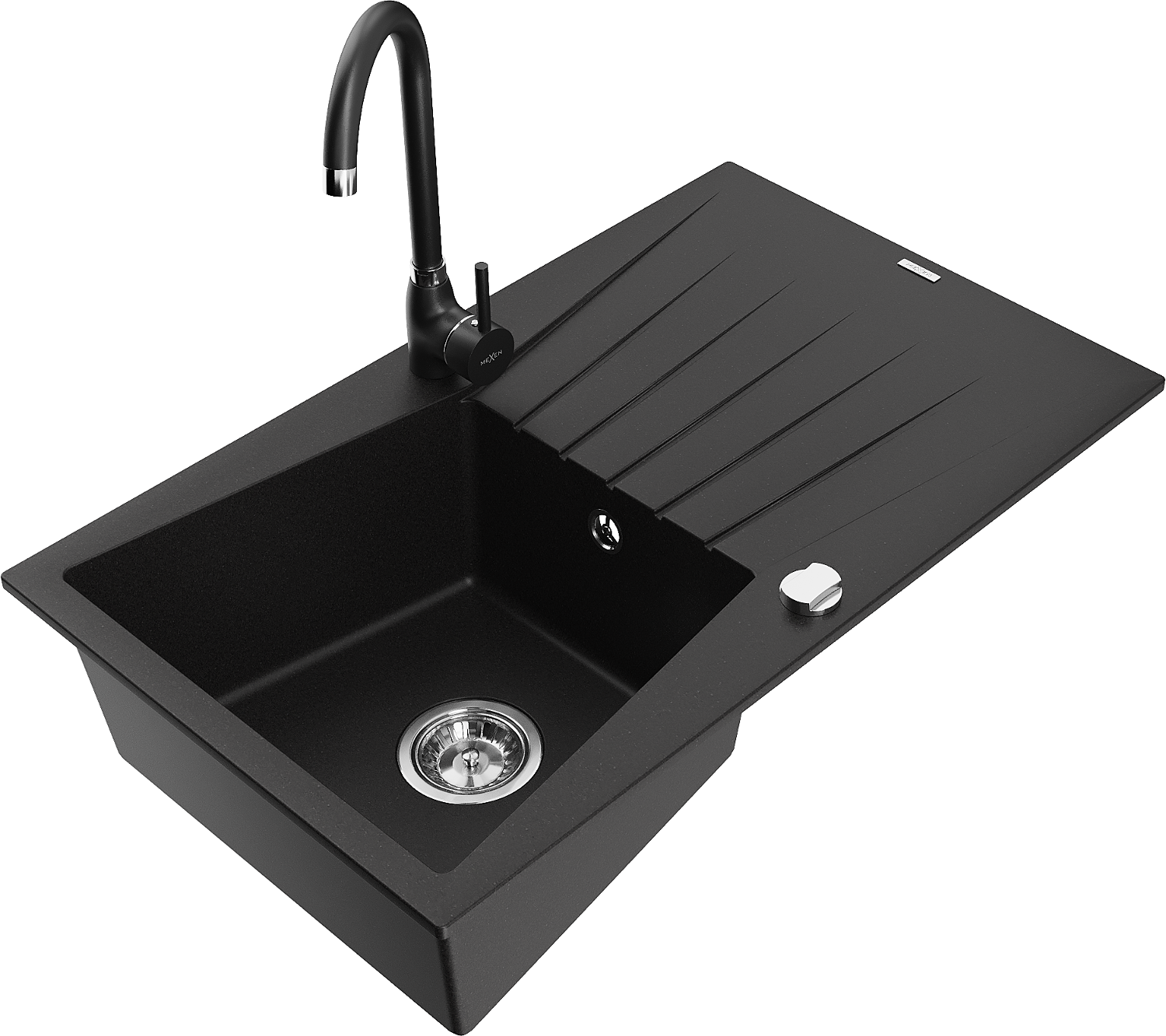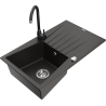 Mexen Cesar single-bowl granite sink with drainer and Telma kitchen tap, black - 6514-77-670200-70