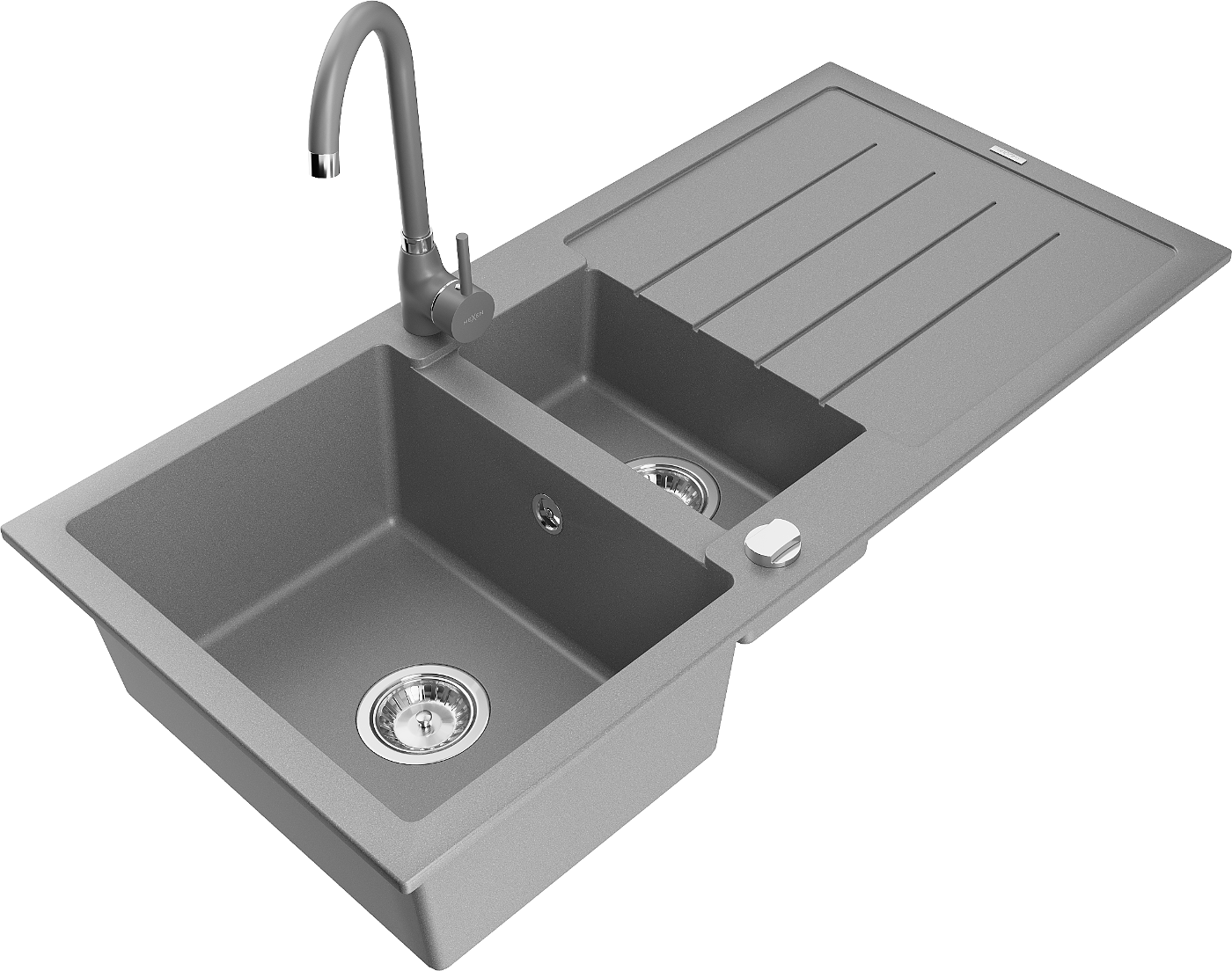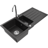 Mexen Andres granite sink 1.5-bowl with drainer and Telma kitchen tap, grey - 6515-71-670200-71