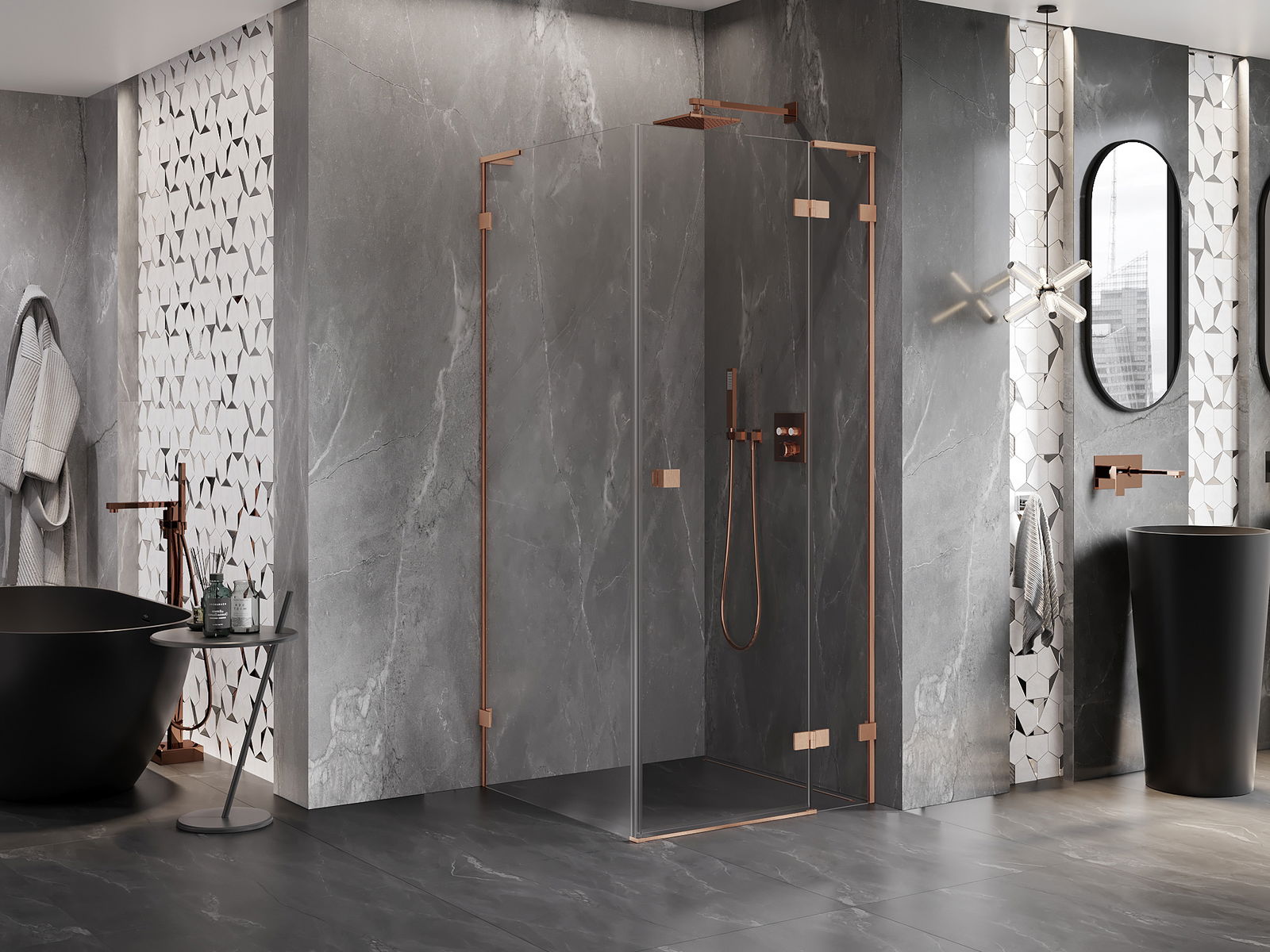 A handy and comfortable handle made from durable and resistant metal. Its trendy shape combined with a finish matched to the colour of the profiles gives the whole a modern and stylish look, highlighting the aesthetics of every bathroom.