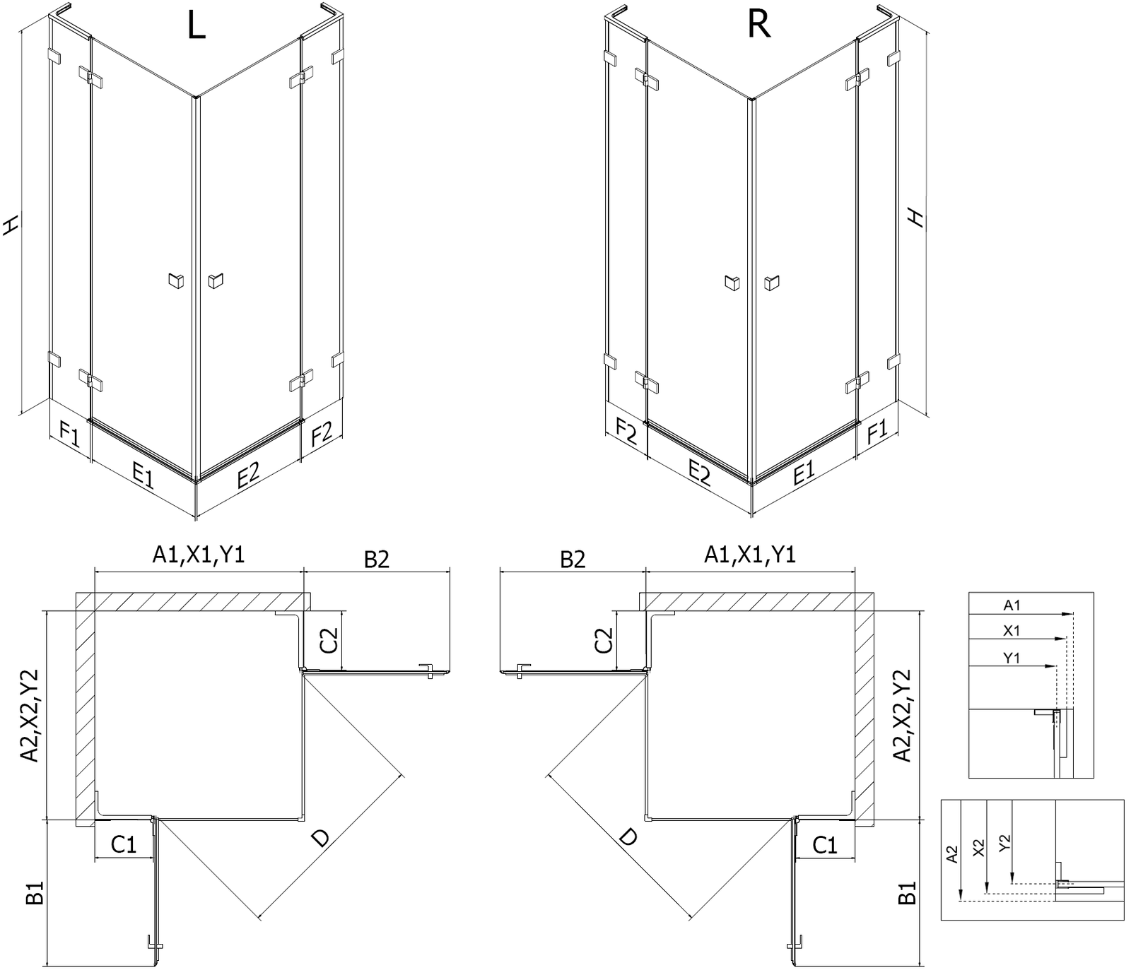 Shower enclosures, doors, and walls are standardly adapted for installation on shower trays of specific dimensions. These dimensions are provided in the product name or description. However, please note that the actual dimensions of the elements may slightly differ from the nominal values. In the case of planned installation directly on the floor, it is recommended to carefully check the external dimensions and the layout of the elements according to the technical drawing.