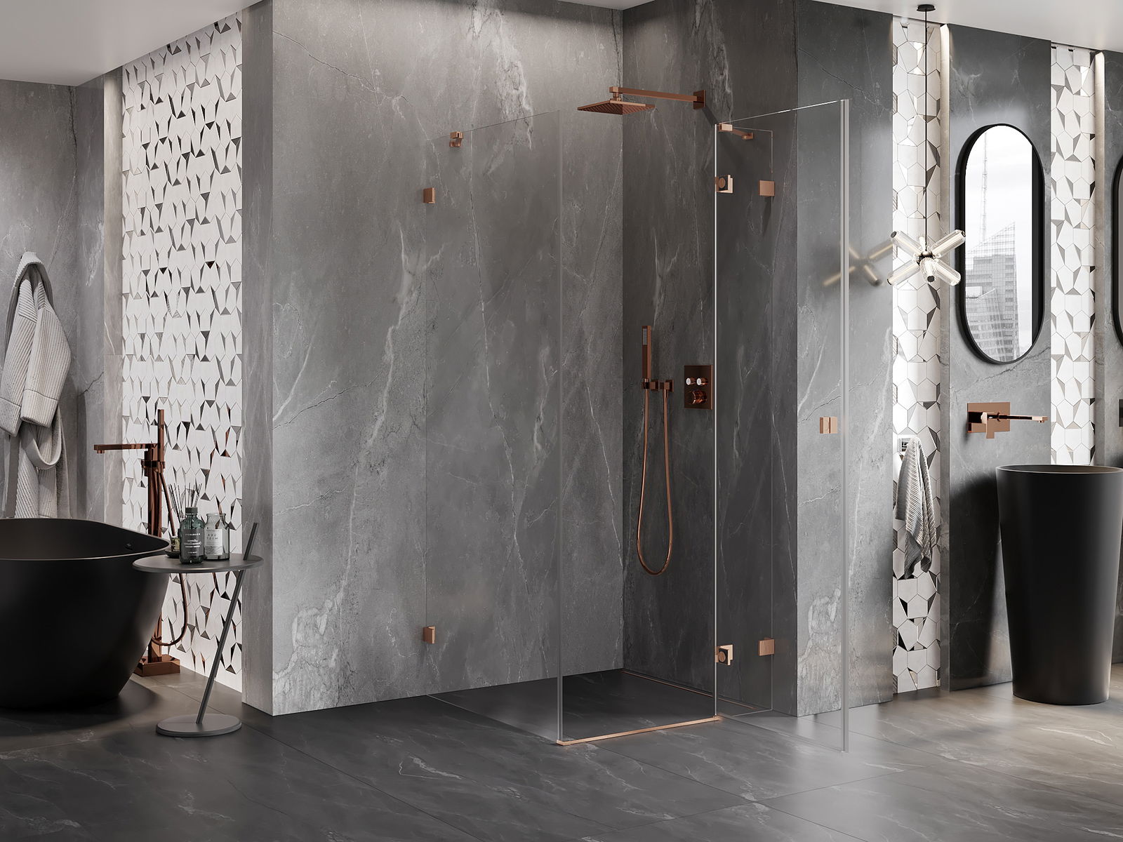 A handy and comfortable handle made from durable and resistant metal. Its trendy shape combined with a finish matched to the colour of the profiles gives the whole a modern and stylish look, highlighting the aesthetics of every bathroom.