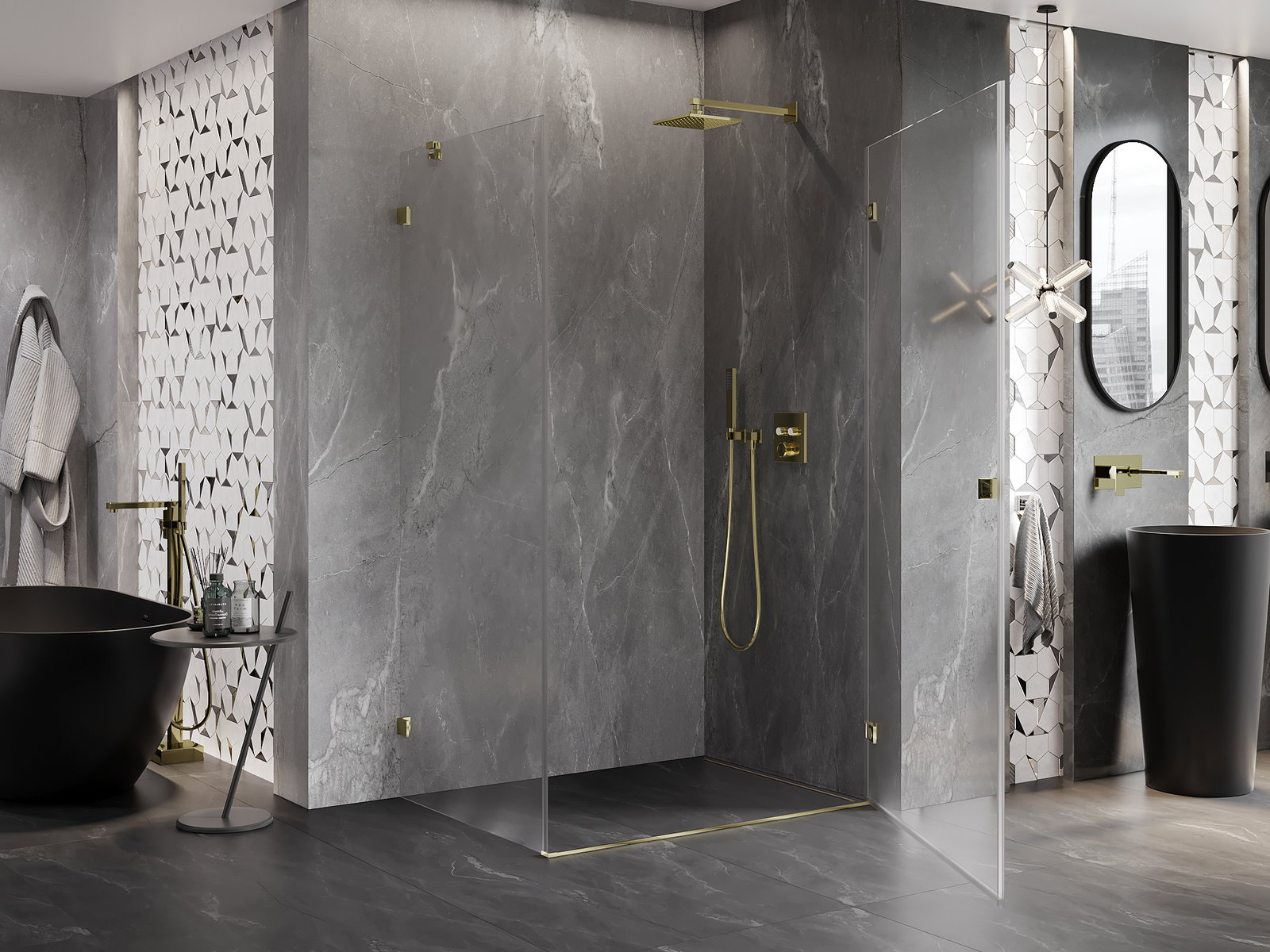 A handy and comfortable handle made from durable and resistant metal. Its trendy shape combined with a finish matched to the colour of the profiles gives the whole a modern and stylish look, highlighting the aesthetics of every bathroom.