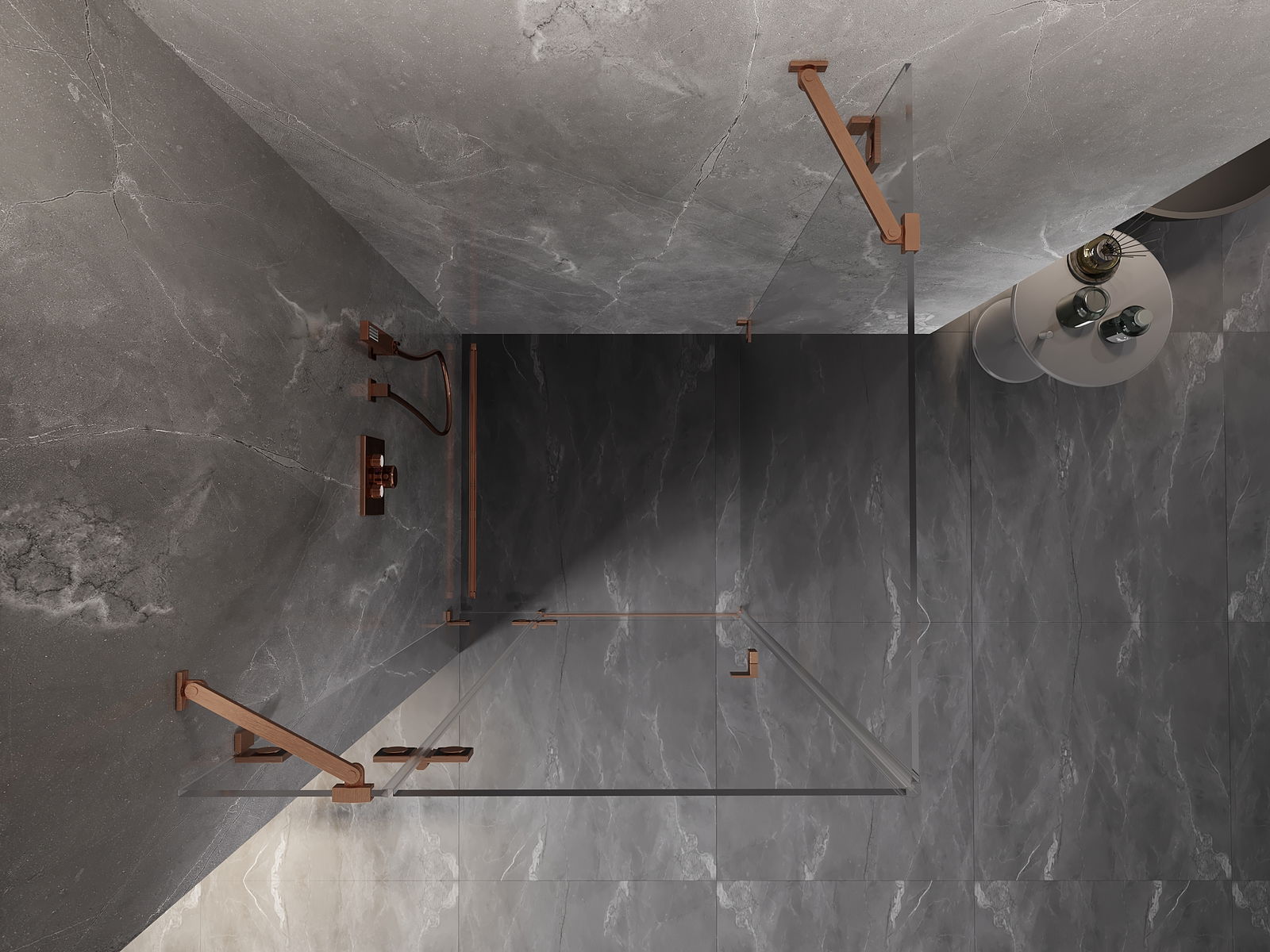 Clamps and hinges are made from very durable brass, additionally creating a flush glass surface. This is an excellent choice that combines elegance, durability, and modern design. Such solutions enhance the aesthetic of the shower while also making it easier to maintain cleanliness.