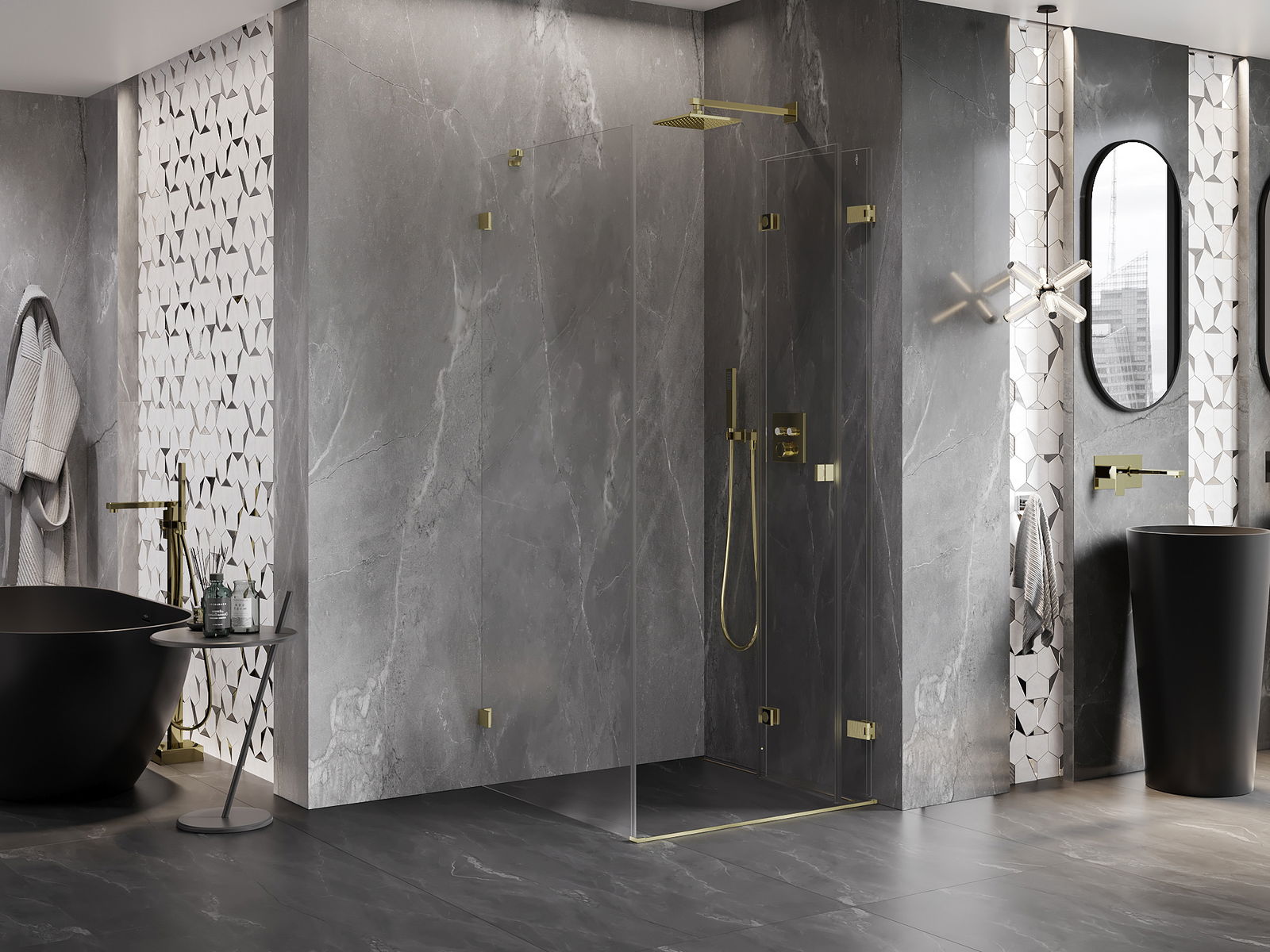 A handy and comfortable handle made from durable and resistant metal. Its trendy shape combined with a finish matched to the colour of the profiles gives the whole a modern and stylish look, highlighting the aesthetics of every bathroom.