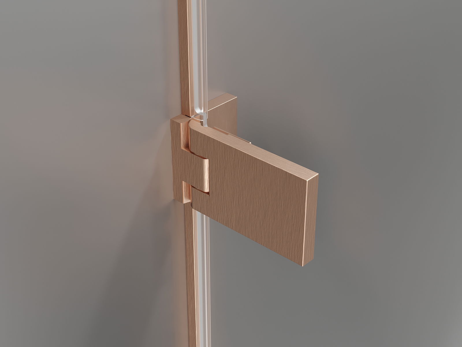 Flush brass clamps and hinges with the glass pane