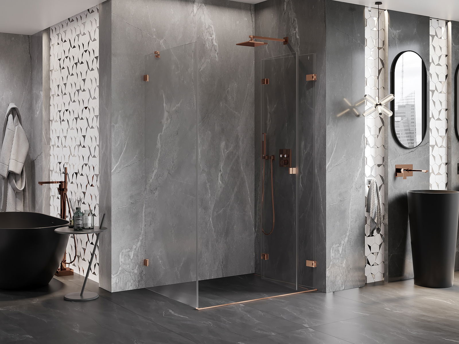 A handy and comfortable handle made from durable and resistant metal. Its trendy shape combined with a finish matched to the colour of the profiles gives the whole a modern and stylish look, highlighting the aesthetics of every bathroom.