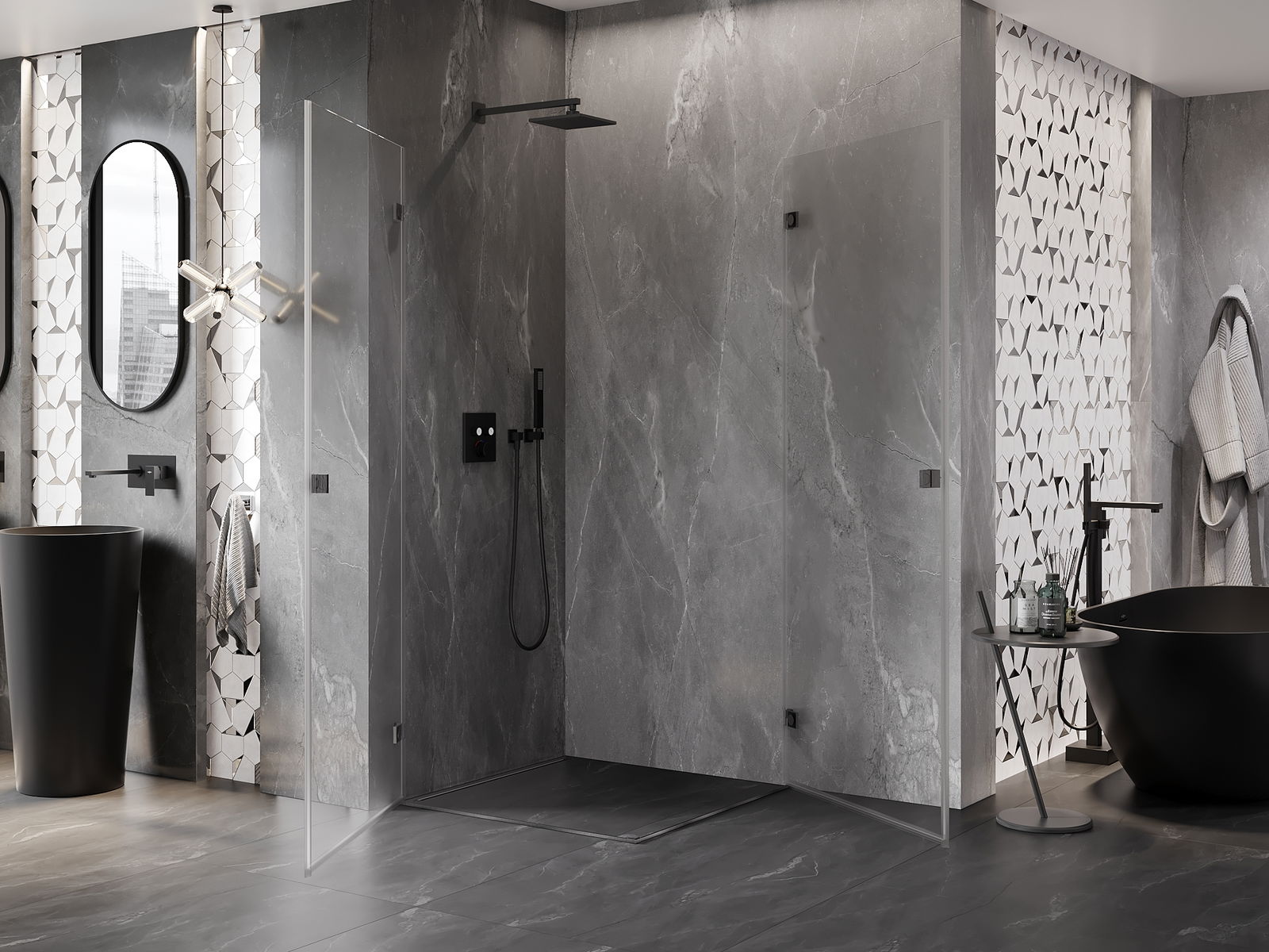 A handy and comfortable handle made from durable and resistant metal. Its trendy shape combined with a finish matched to the colour of the profiles gives the whole a modern and stylish look, highlighting the aesthetics of every bathroom.