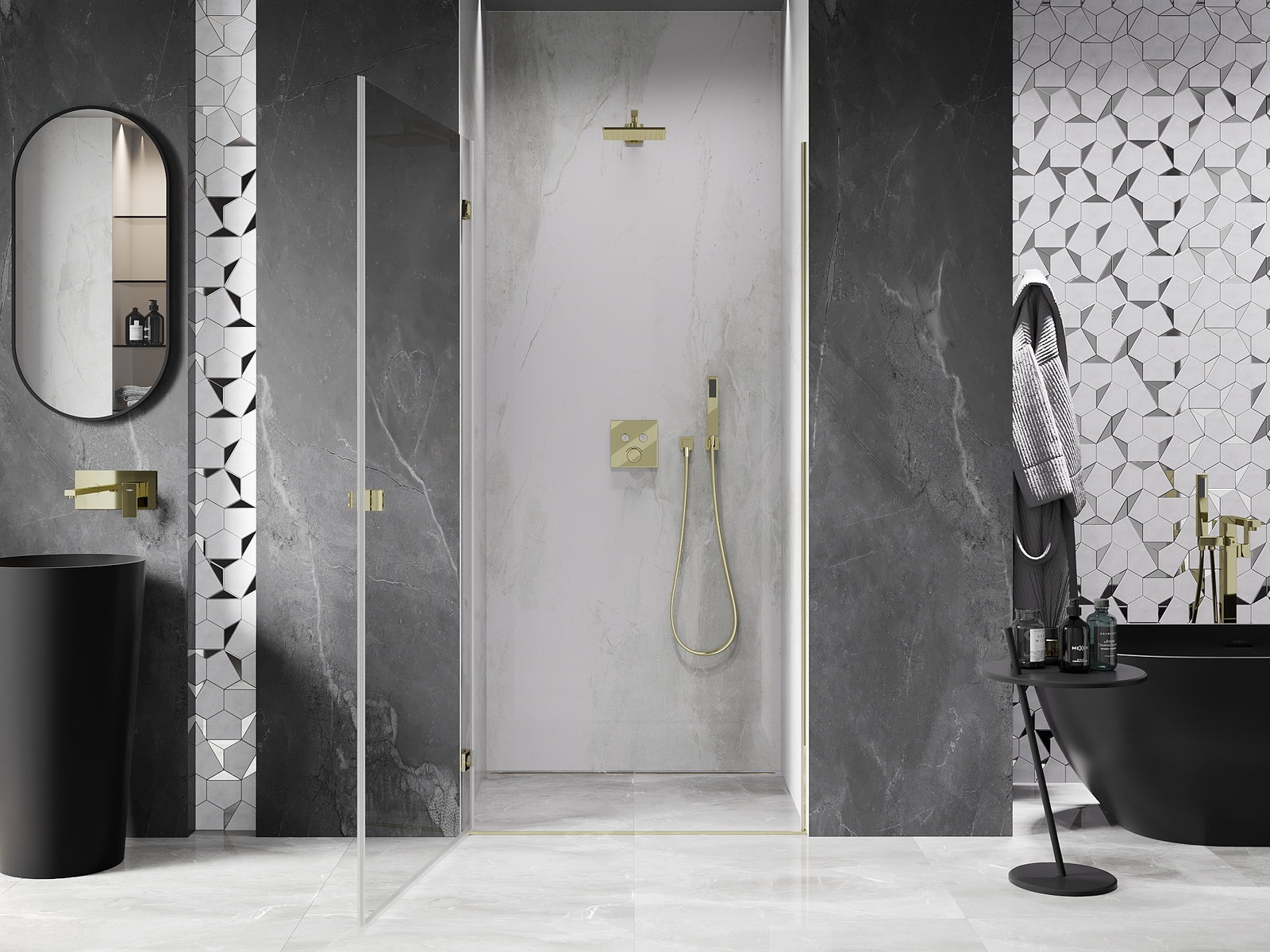 Mexen Lunar-B 75 cm Left Swinging Shower Door, Transparent, Gold - 832-075-000-50-00-L