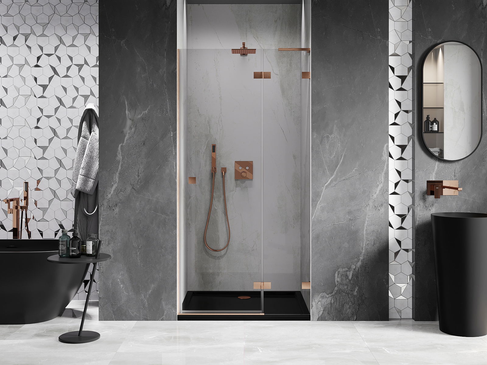 A handy and comfortable handle made from durable and resistant metal. Its trendy shape combined with a finish matched to the colour of the profiles gives the whole a modern and stylish look, highlighting the aesthetics of every bathroom.