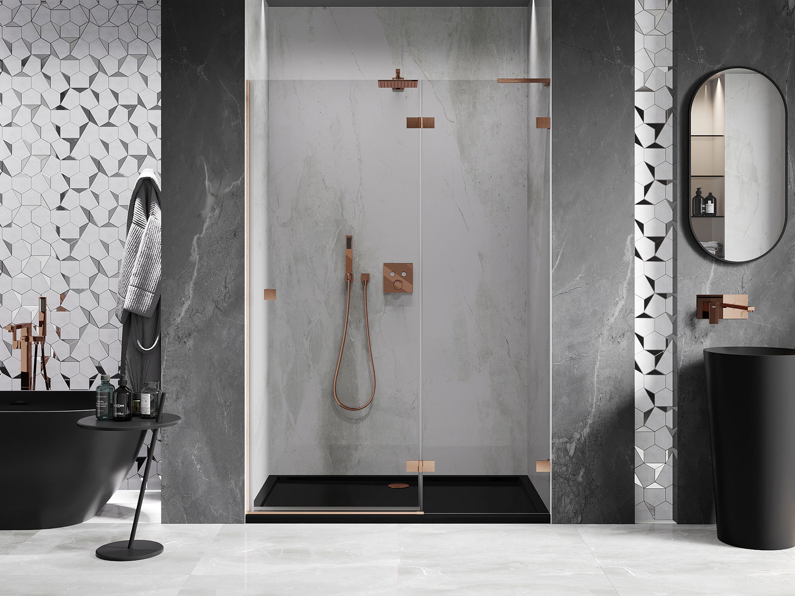 Clamps and hinges are made from very durable brass, additionally creating a flush glass surface. This is an excellent choice that combines elegance, durability, and modern design. Such solutions enhance the aesthetic of the shower while also making it easier to maintain cleanliness.