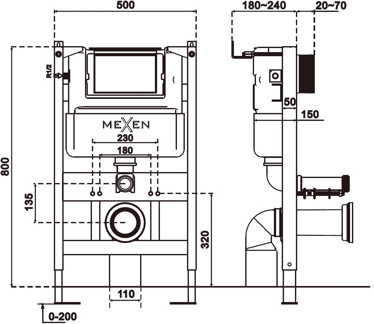 Mexen Tex Air XS-F pneumatic concealed frame for WC - 61800A