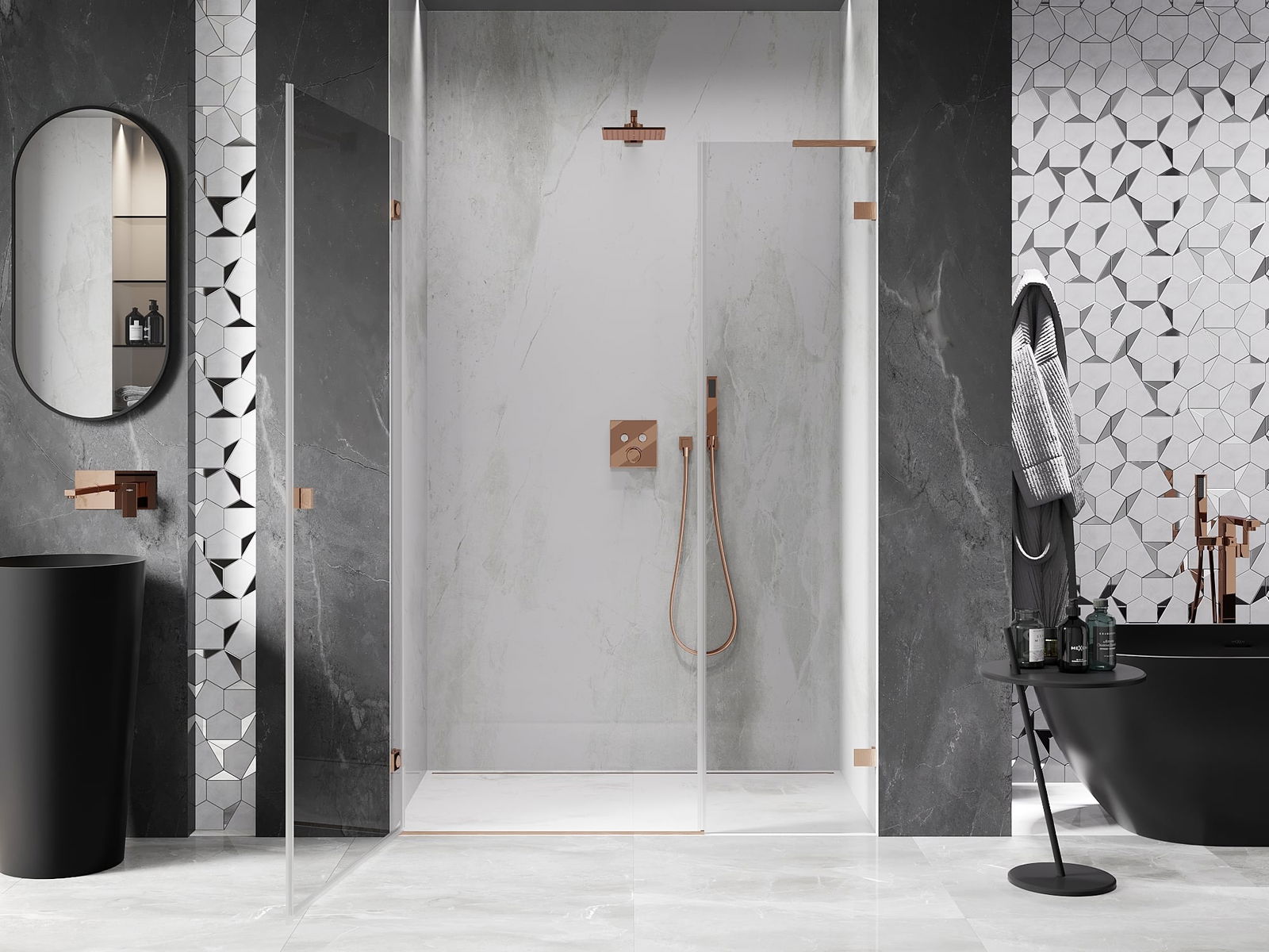 A handy and comfortable handle made from durable and resistant metal. Its trendy shape combined with a finish matched to the colour of the profiles gives the whole a modern and stylish look, highlighting the aesthetics of every bathroom.