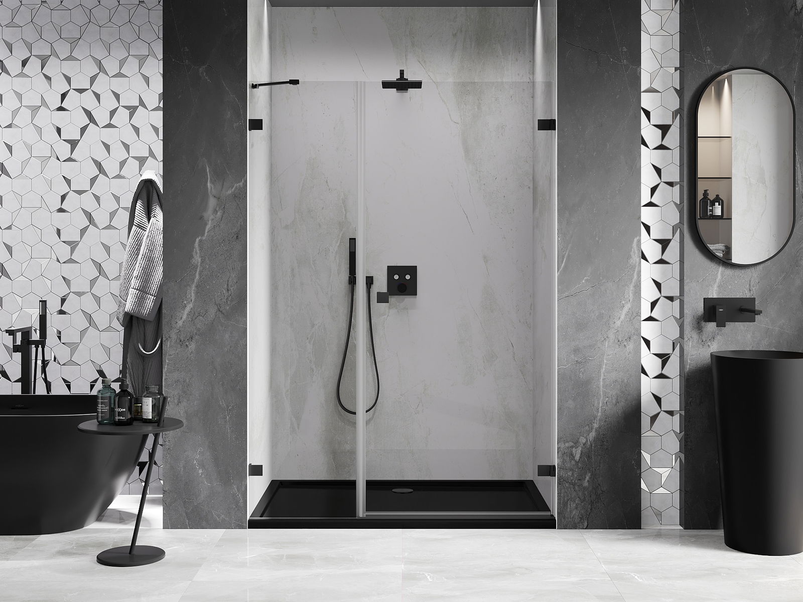 A handy and comfortable handle made from durable and resistant metal. Its trendy shape combined with a finish matched to the colour of the profiles gives the whole a modern and stylish look, highlighting the aesthetics of every bathroom.