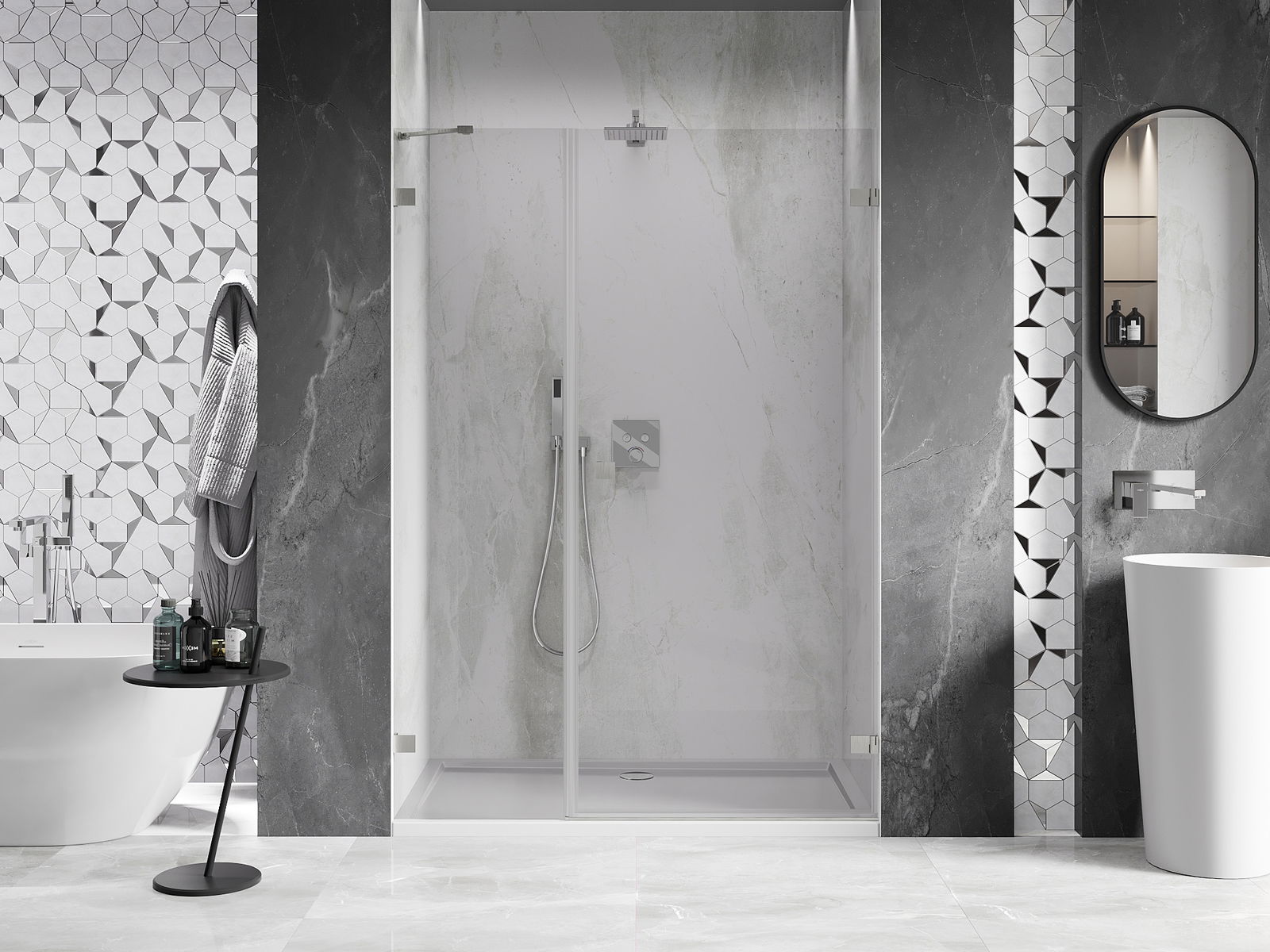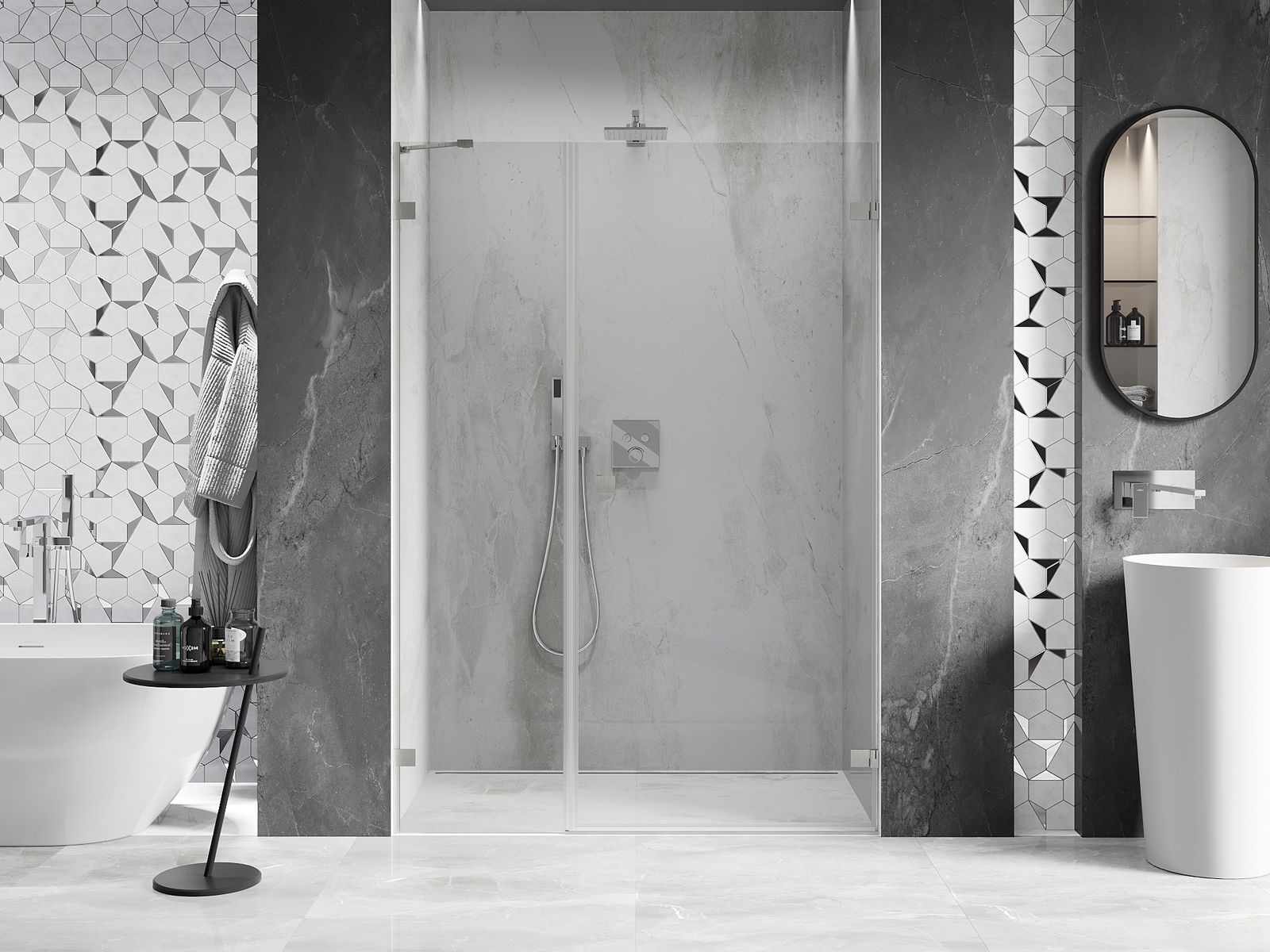 A handy and comfortable handle made from durable and resistant metal. Its trendy shape combined with a finish matched to the colour of the profiles gives the whole a modern and stylish look, highlighting the aesthetics of every bathroom.