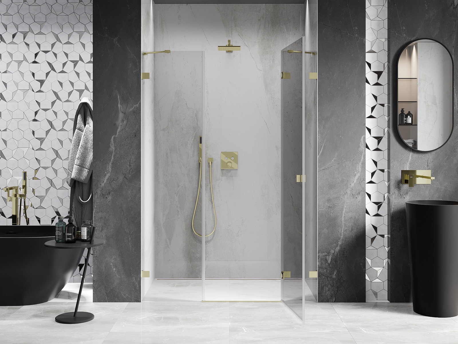 Clamps and hinges are made from very durable brass, additionally creating a flush glass surface. This is an excellent choice that combines elegance, durability, and modern design. Such solutions enhance the aesthetic of the shower while also making it easier to maintain cleanliness.