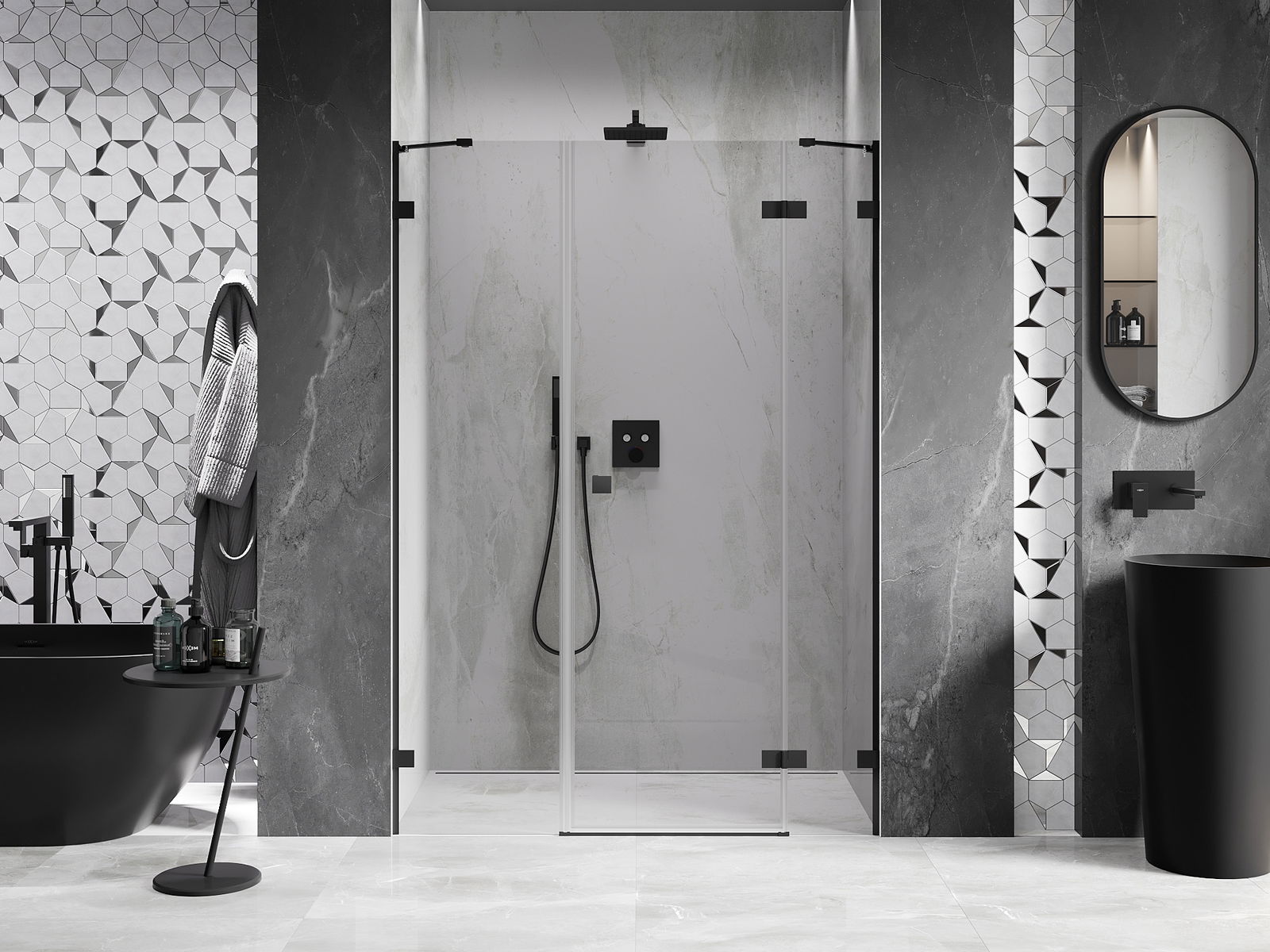 A handy and comfortable handle made from durable and resistant metal. Its trendy shape combined with a finish matched to the colour of the profiles gives the whole a modern and stylish look, highlighting the aesthetics of every bathroom.