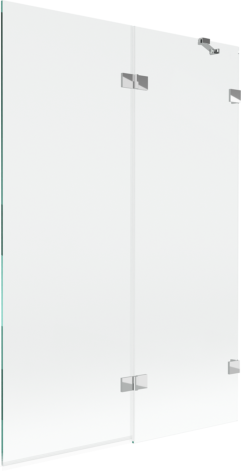 Screen made of two wings with the possibility of folding. This solution allows for more space-saving in the bathroom and enables free use of the remaining space when not using the bathing area.
