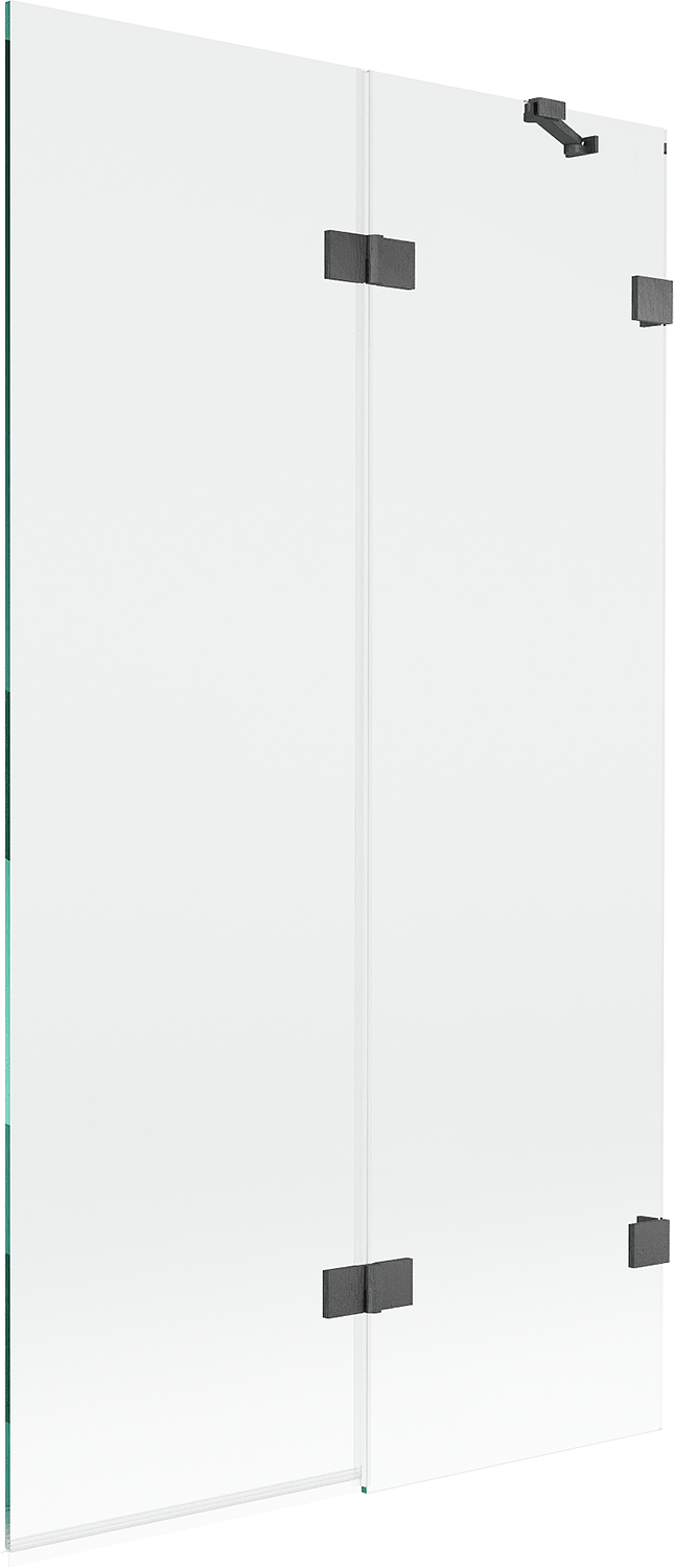 Screen made of two wings with the possibility of folding. This solution allows for more space-saving in the bathroom and enables free use of the remaining space when not using the bathing area.