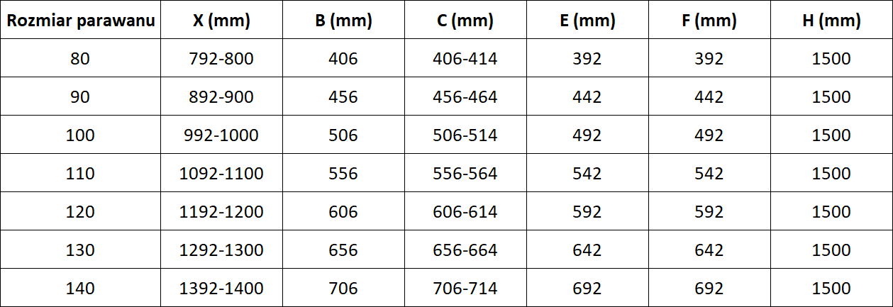 Screen made of two wings with the possibility of folding. This solution allows for more space-saving in the bathroom and enables free use of the remaining space when not using the bathing area.