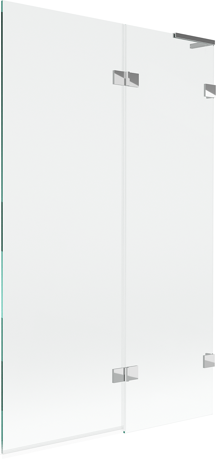 Screen made of two wings with the possibility of folding. This solution allows for more space-saving in the bathroom and enables free use of the remaining space when not using the bathing area.