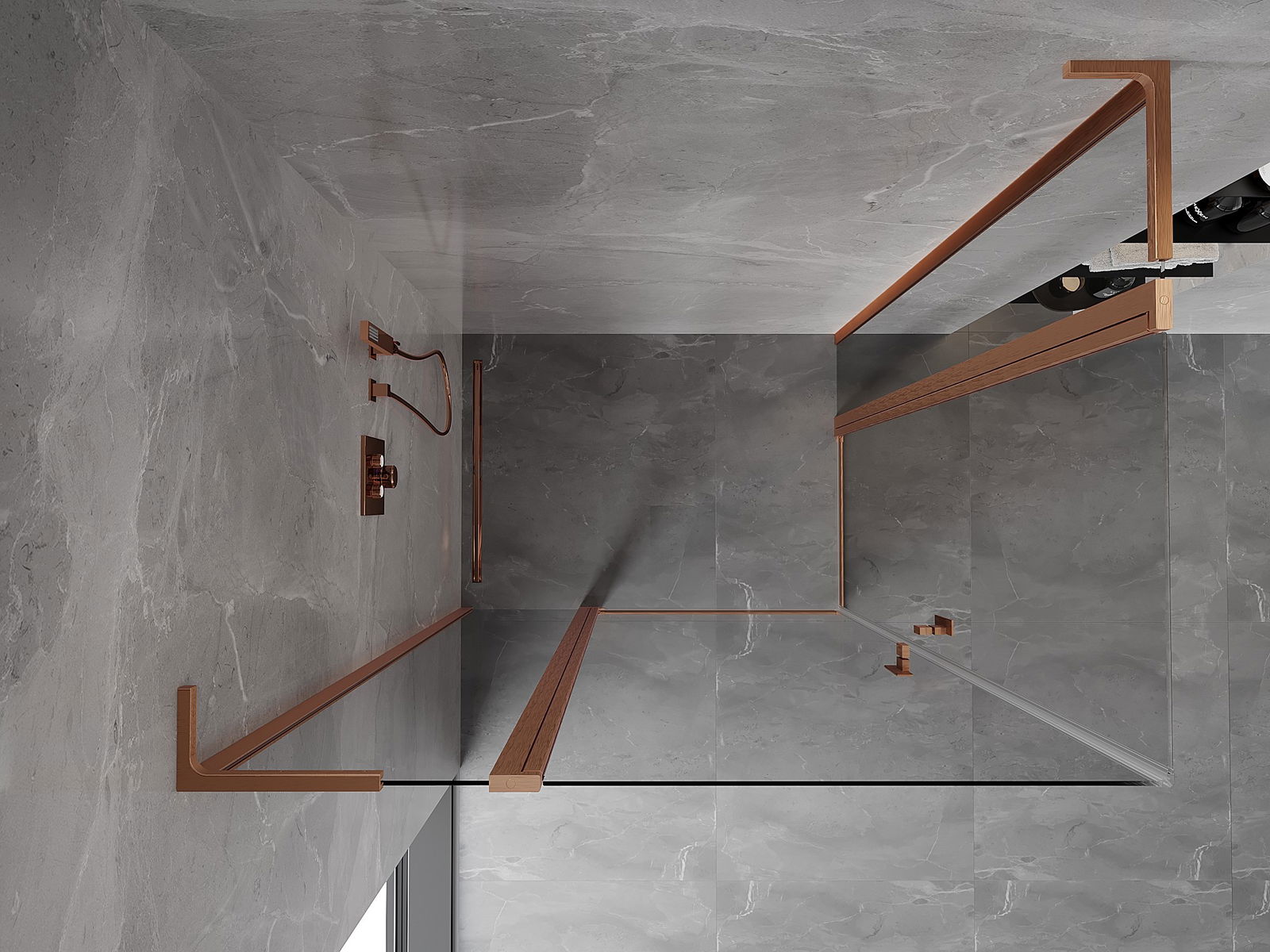 Mexen Mist L Duo 100 x 90 cm Hinged Shower Enclosure, Transparent, Brushed Copper - 8A4L-100-090-65-00