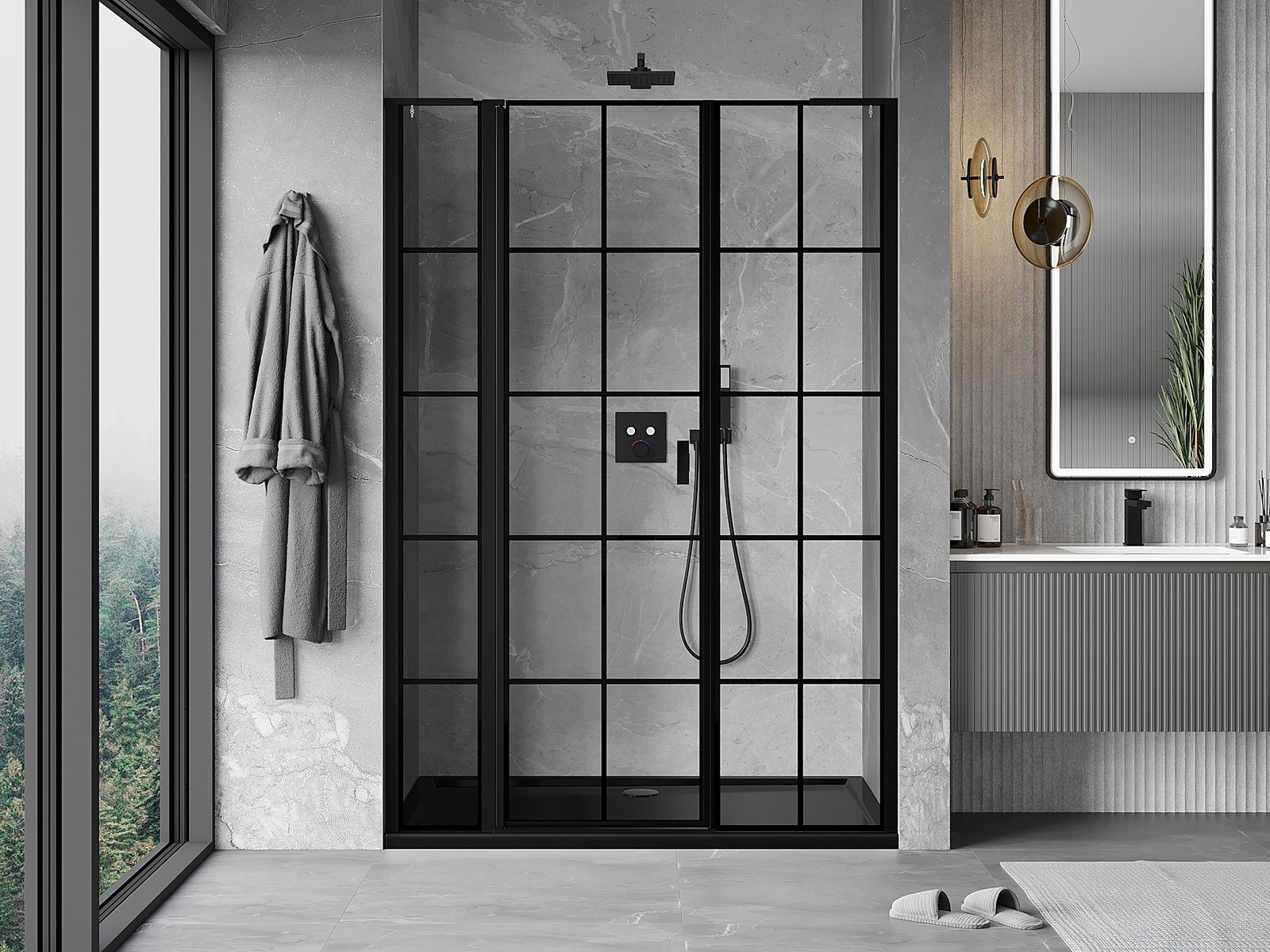 A handy and comfortable handle made from durable and resistant metal. Its trendy shape combined with a finish matched to the colour of the profiles gives the whole a modern and stylish look, highlighting the aesthetics of every bathroom.