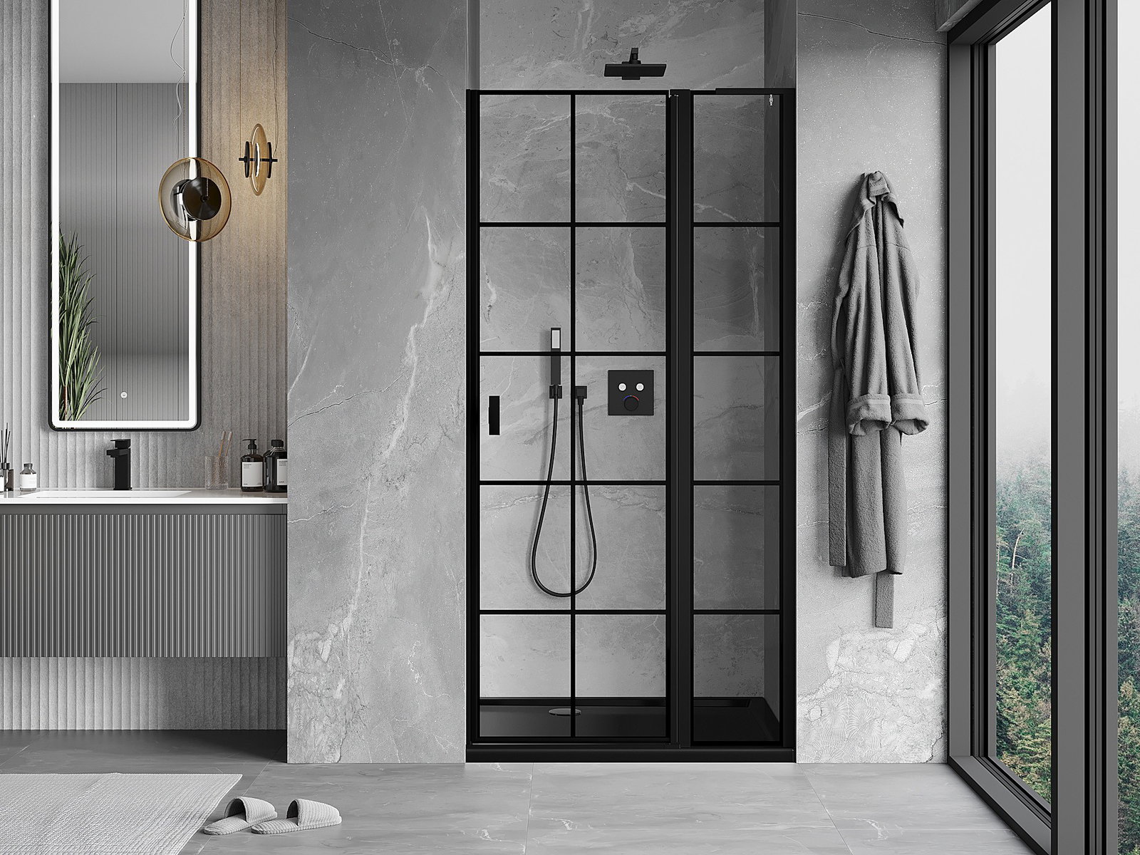 Mexen Mist L Hinged Shower Door Right 105 cm, Black Grid, Black - 8A4L-105-000-70-77-P