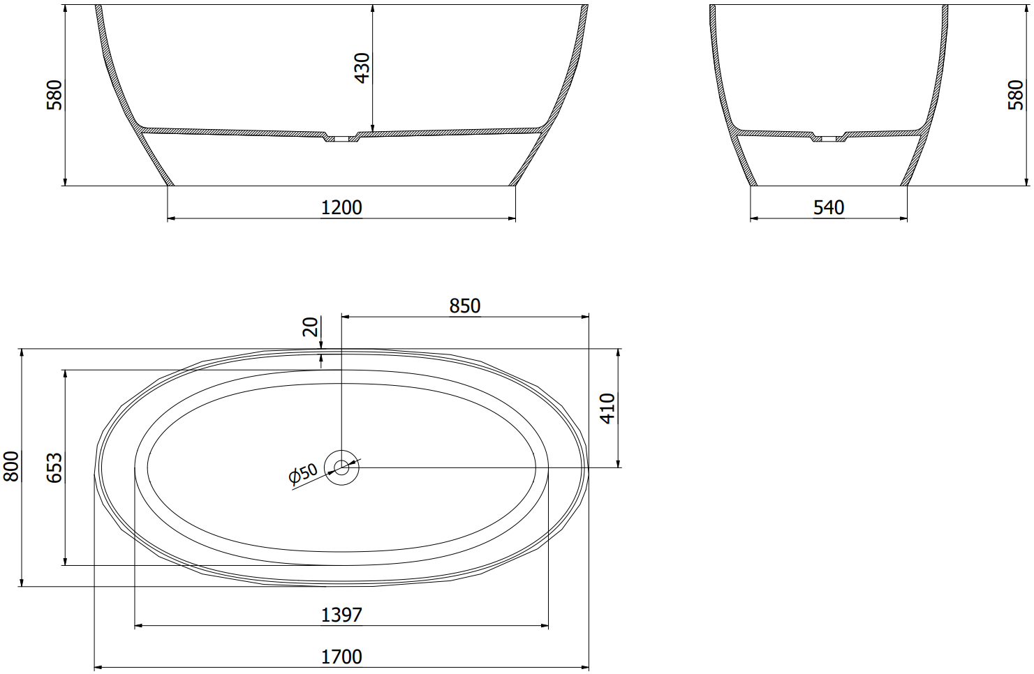 This is a modern material combining an elegant appearance with high durability. It is resistant to mechanical damage, easy to clean, and pleasant to the touch. The transparent form and thin rim of the bathtub add lightness and unique character, creating an impactful accent in bathroom design.
