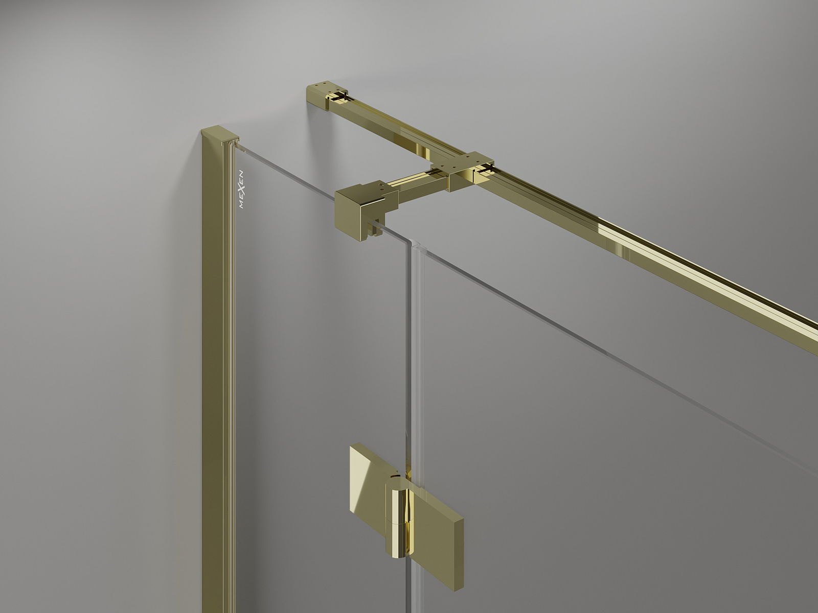 Brass hinges flush with the glass pane