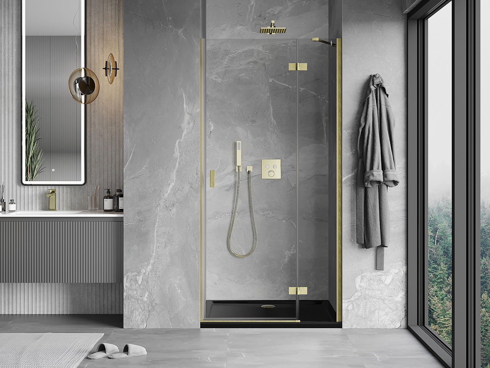 A handy and comfortable handle made from durable and resistant metal. Its trendy shape combined with a finish matched to the colour of the profiles gives the whole a modern and stylish look, highlighting the aesthetics of every bathroom.