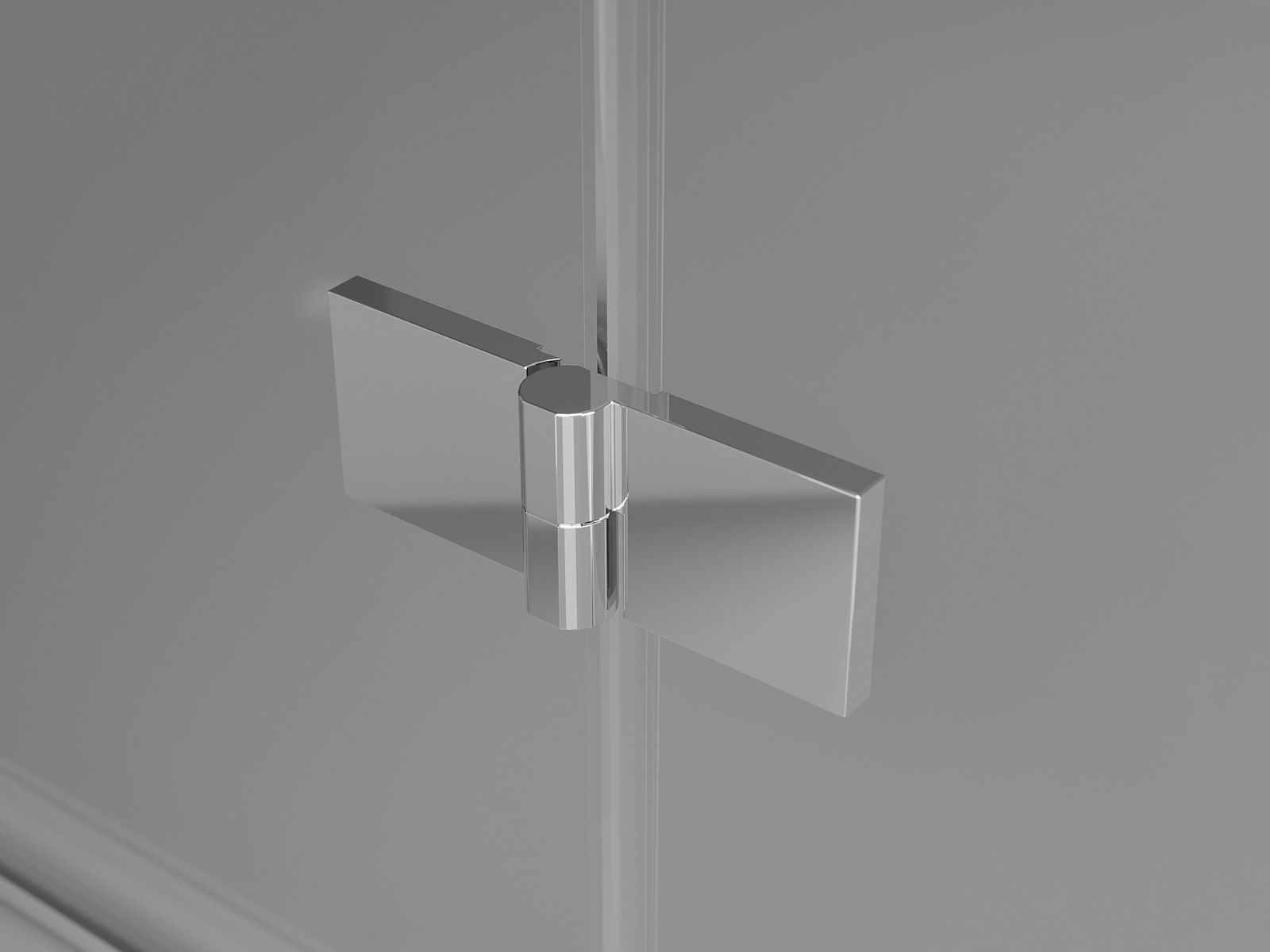 Brass hinges flush with the glass surface