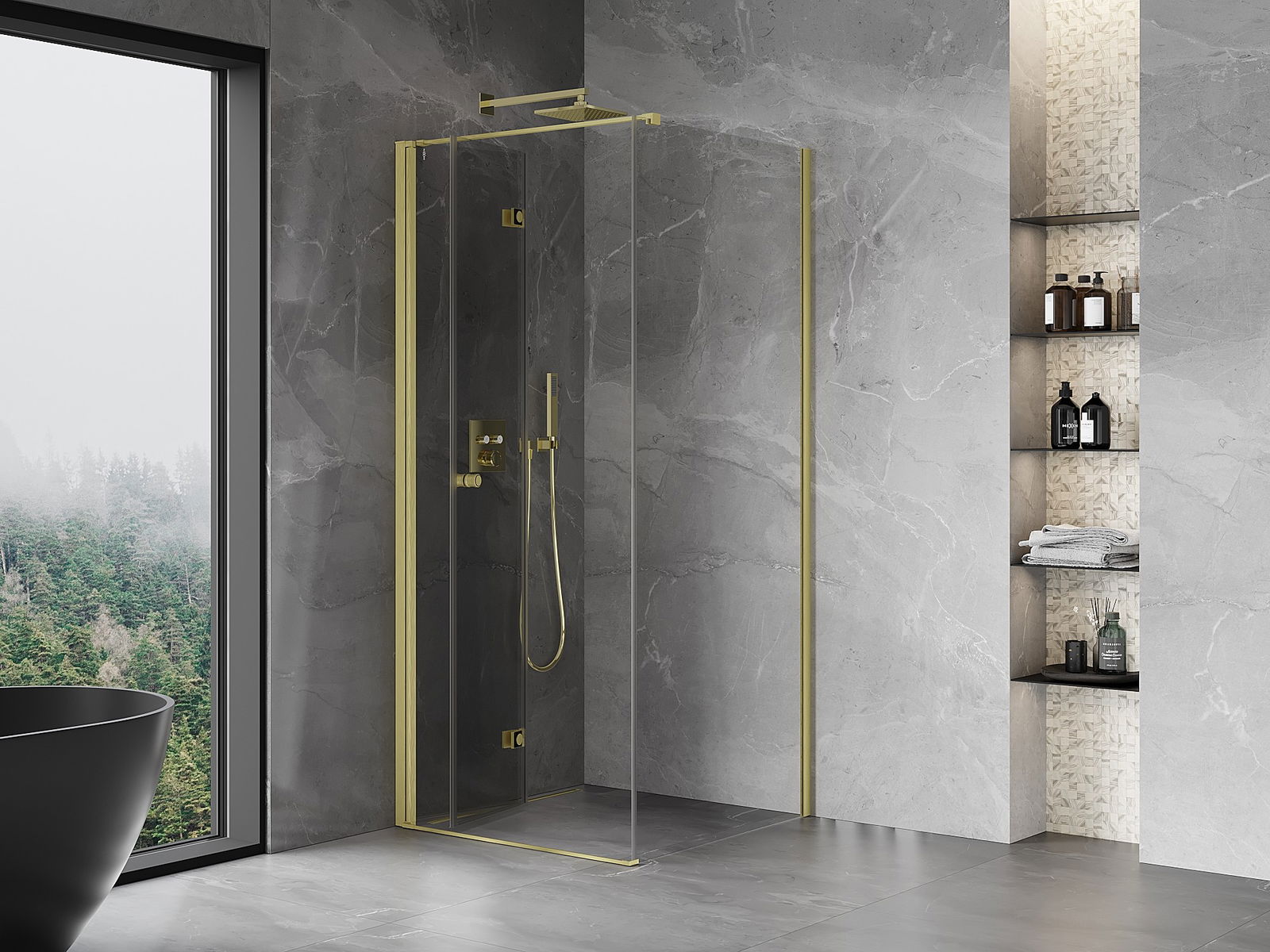 Mexen Mist-F folding shower cabin left 75 x 75 cm, transparent, brushed gold - 8A6T-075-075-55-00-L