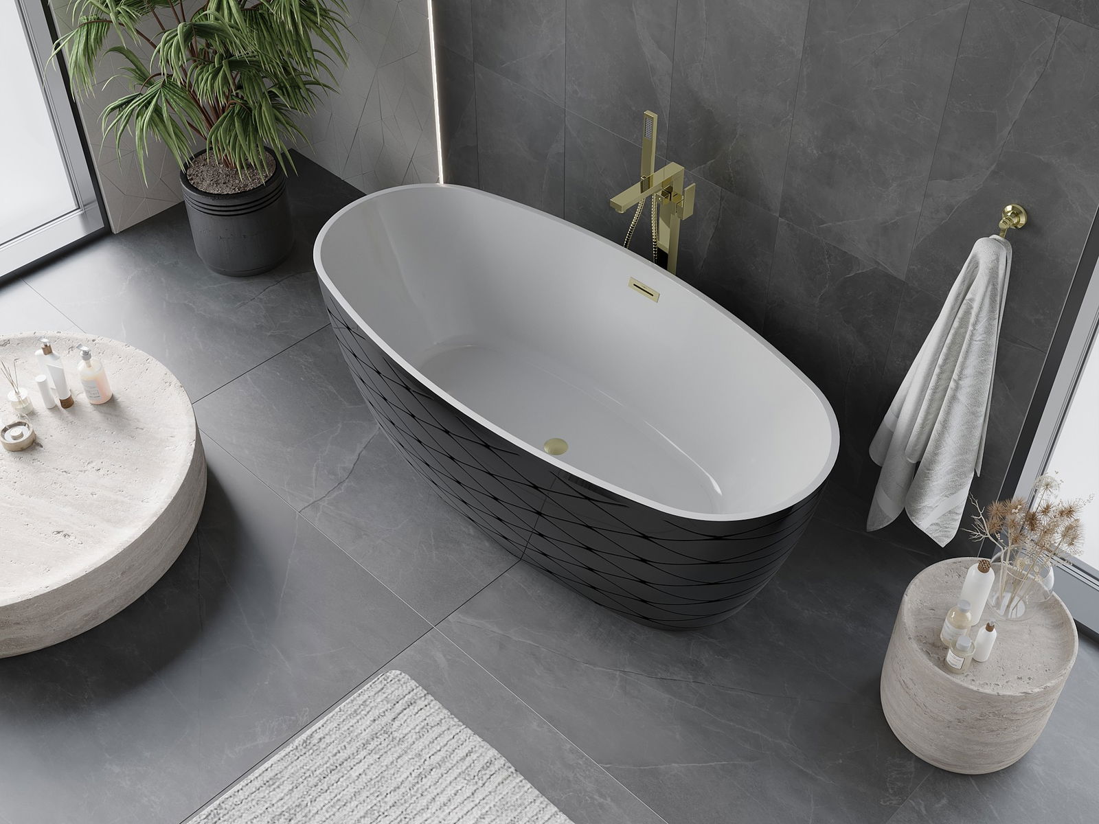 The bathtub is equipped with adjustable legs that allow you to level the tub even on an uneven surface. A practical solution providing greater stability and safety during use and ease of installation.