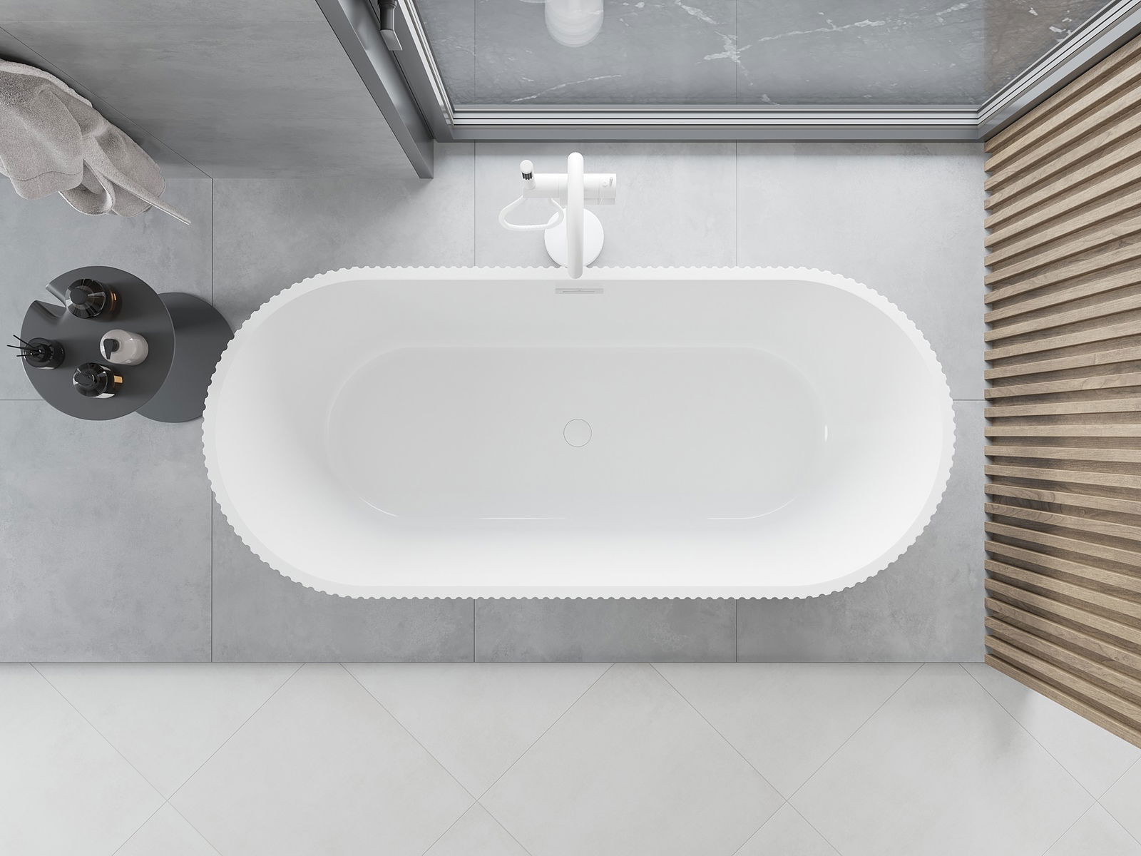 The use of acrylic in the bathroom is a very practical solution. Acrylic retains the water temperature well, preventing it from cooling down quickly. It also has acoustic properties, which helps reduce noise in the bathroom.