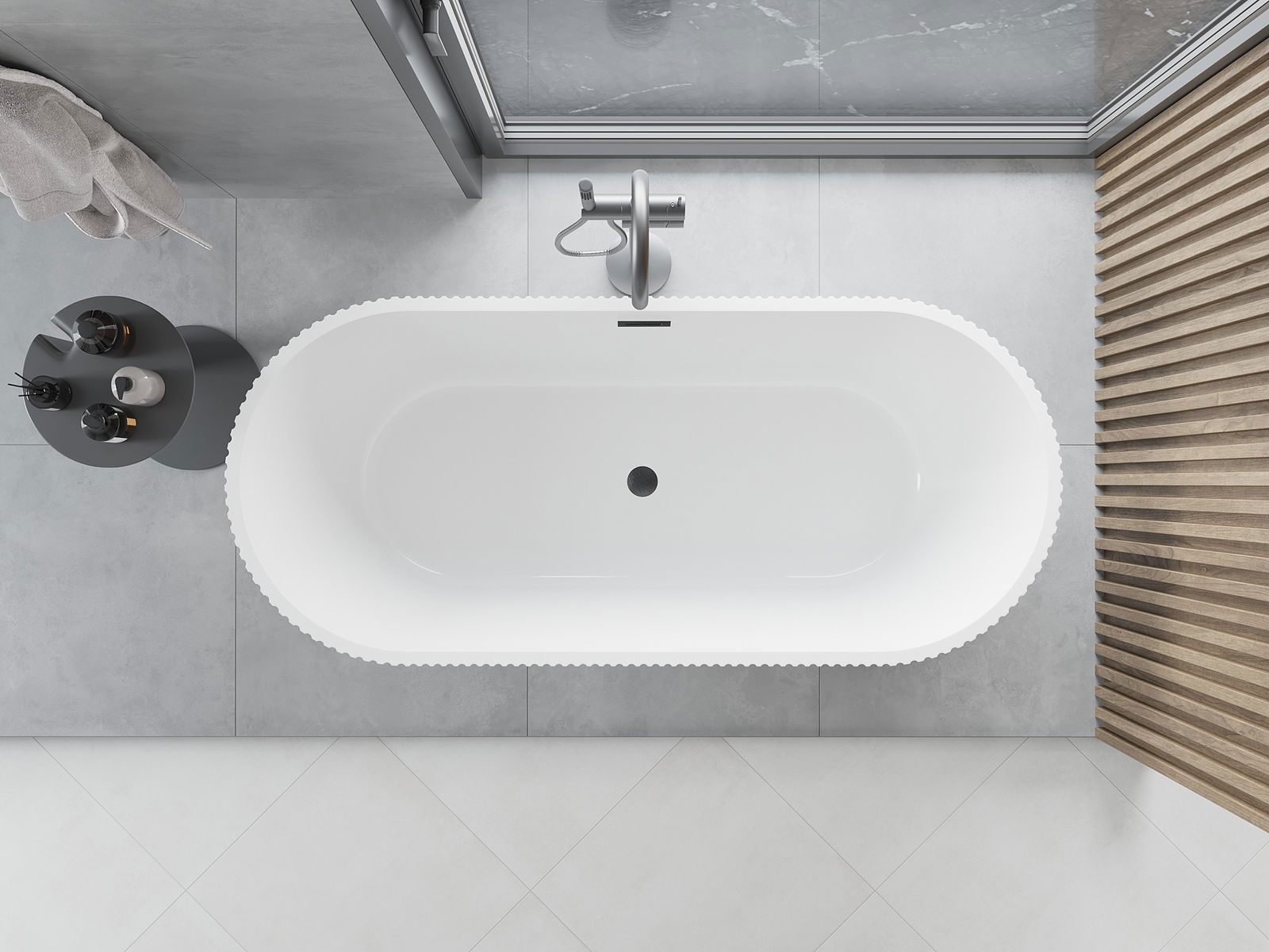 The use of acrylic in the bathroom is a very practical solution. Acrylic retains the water temperature well, preventing it from cooling down quickly. It also has acoustic properties, which helps reduce noise in the bathroom.