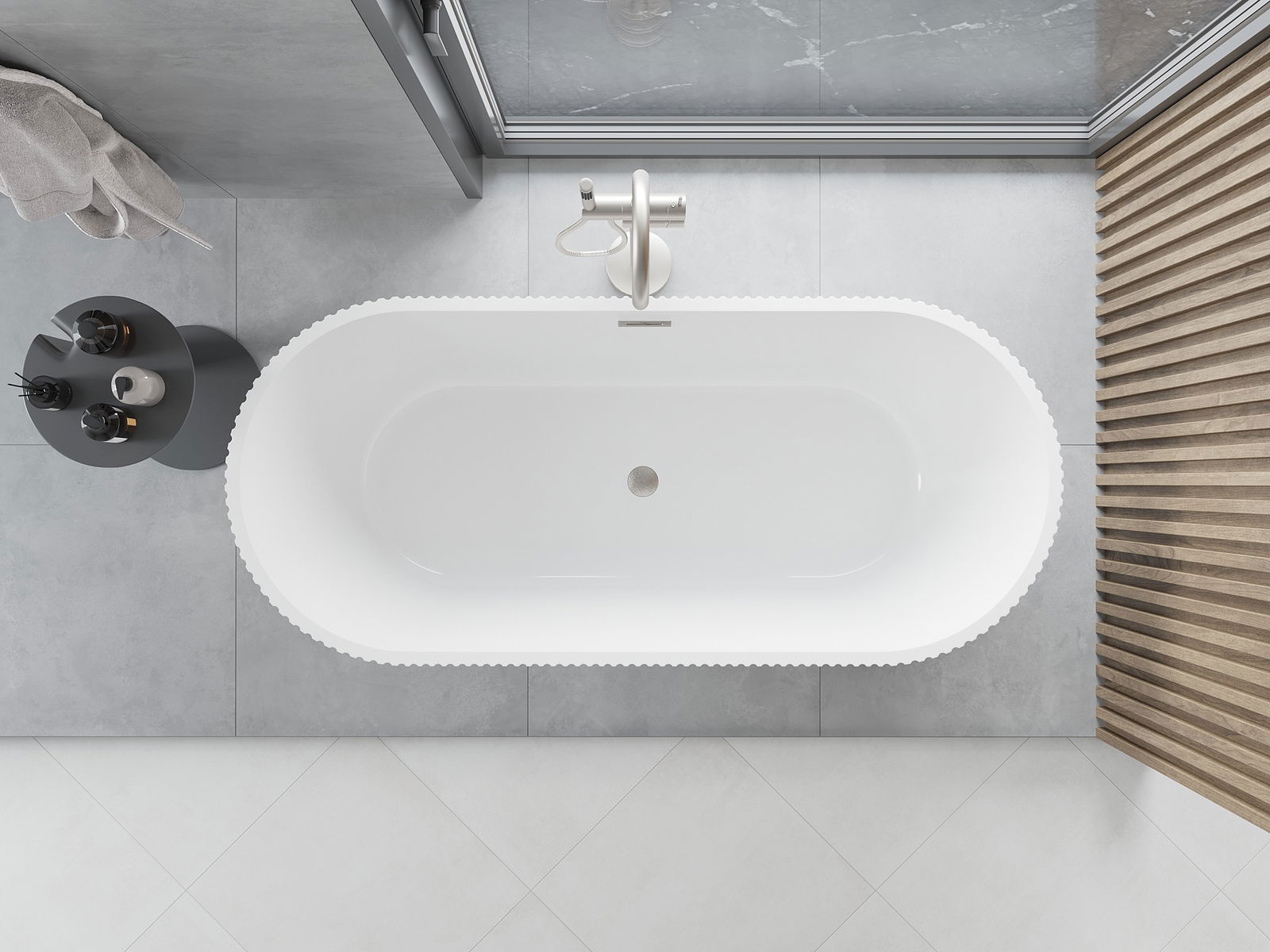 The use of acrylic in the bathroom is a very practical solution. Acrylic retains the water temperature well, preventing it from cooling down quickly. It also has acoustic properties, which helps reduce noise in the bathroom.