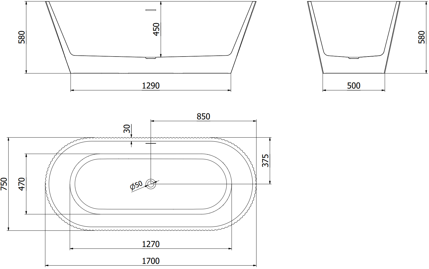 The overflow opening is referred to as the "safety opening". It allows excess water to escape, protecting the bathroom from flooding. This is a safe and practical solution that lets you enjoy a bath without worrying about the water level rising.