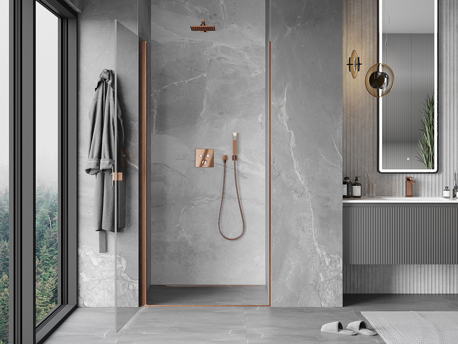 A handy and comfortable handle made from durable and resistant metal. Its trendy shape combined with a finish matched to the colour of the profiles gives the whole a modern and stylish look, highlighting the aesthetics of every bathroom.