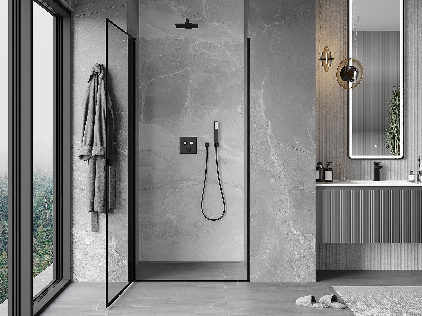 A handy and comfortable handle made from durable and resistant metal. Its trendy shape combined with a finish matched to the colour of the profiles gives the whole a modern and stylish look, highlighting the aesthetics of every bathroom.