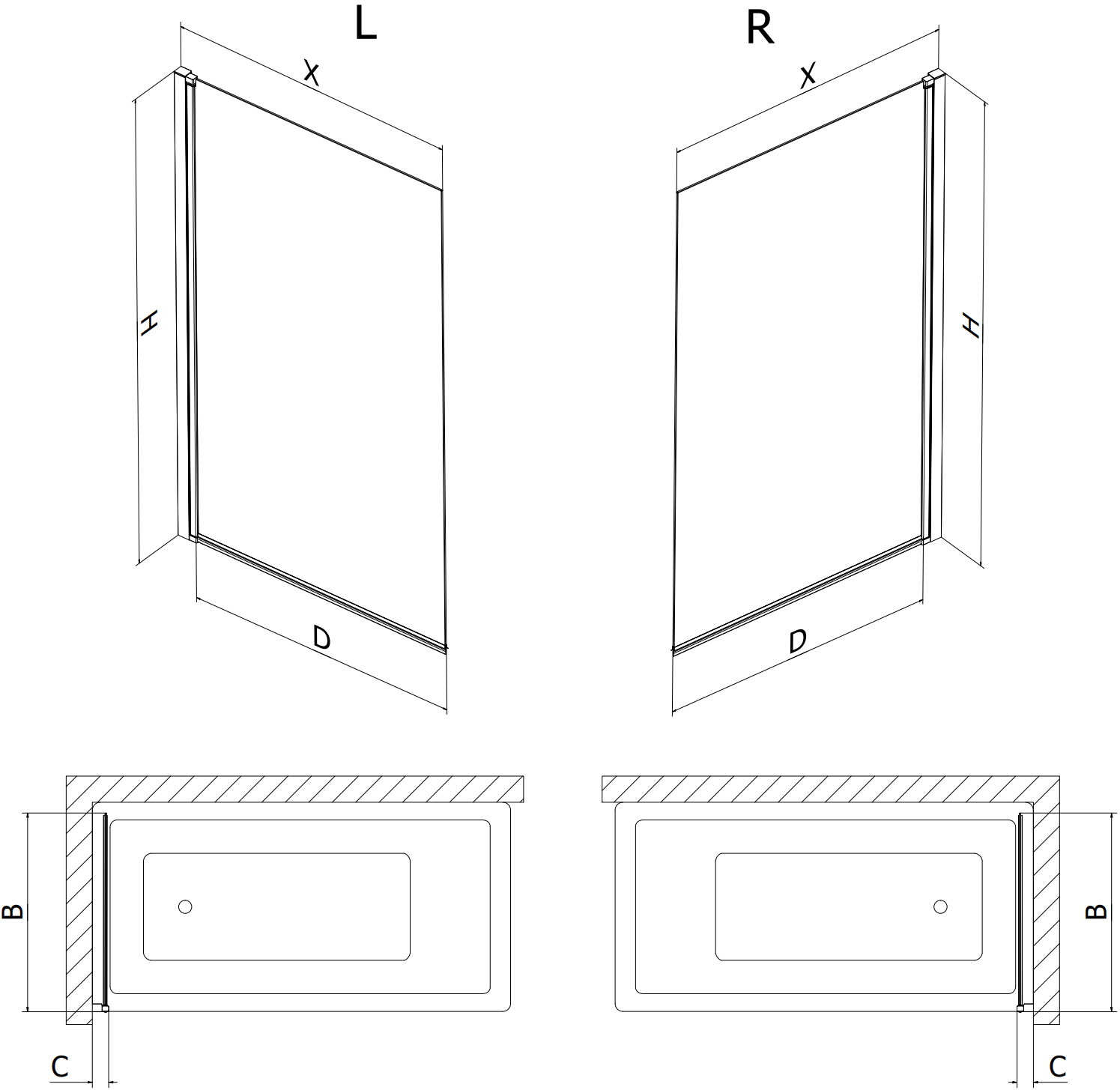 The screen has one movable wing that can be folded. This solution saves more space in the bathroom and allows free use of the remaining space when the bathing area is not in use.