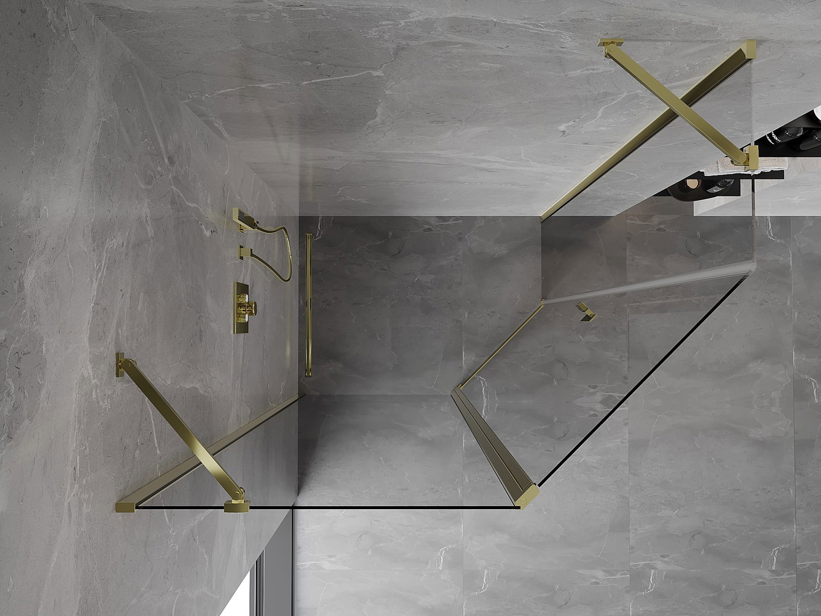Mexen Mist asymmetrical pentagon shower enclosure 100 x 90 cm, transparent, gold - 8A8-100-090-50-00