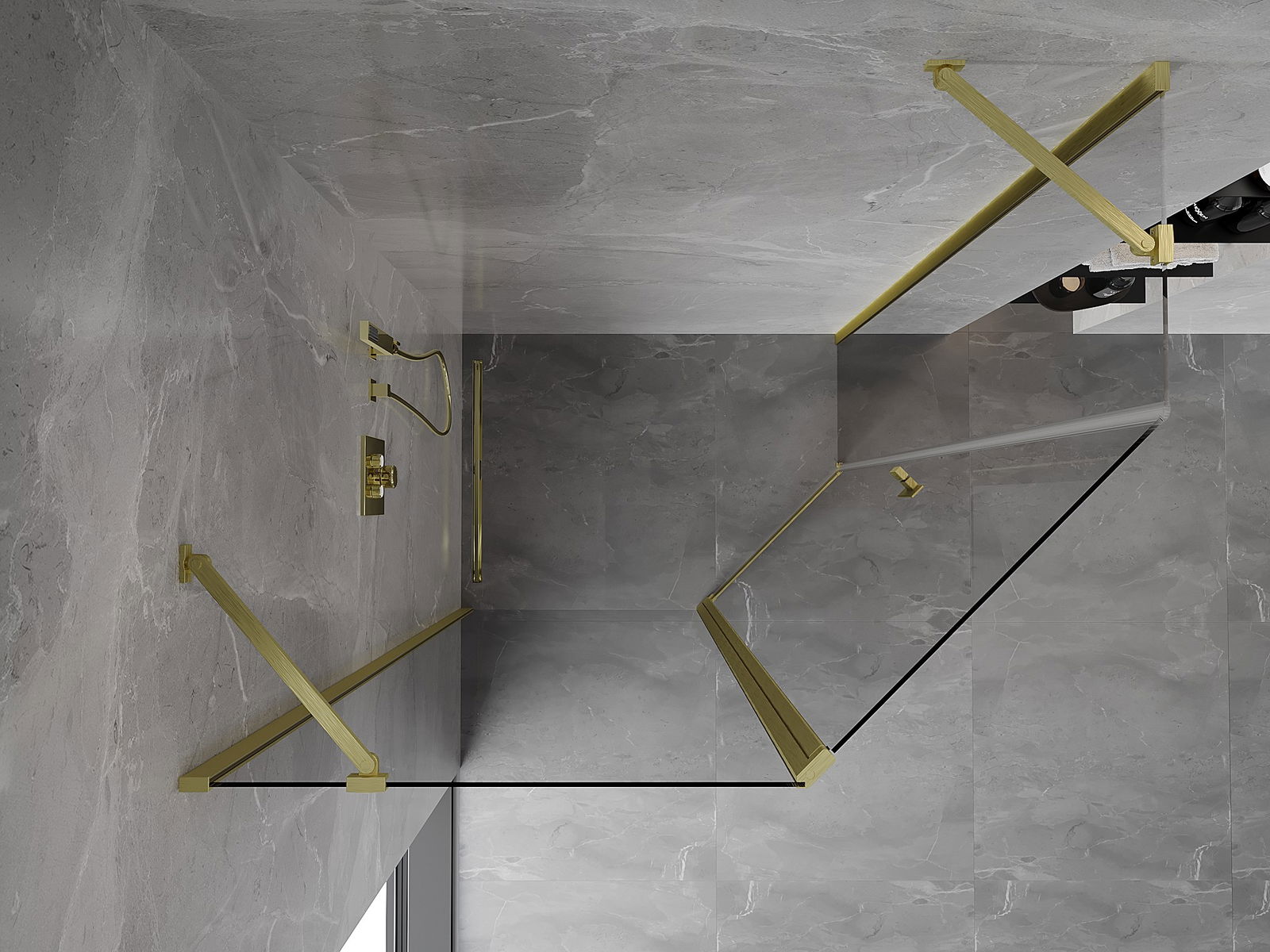 Mexen Mist pentagonal asymmetrical hinged shower cabin 100 x 90 cm, transparent, brushed gold - 8A8-100-090-55-00