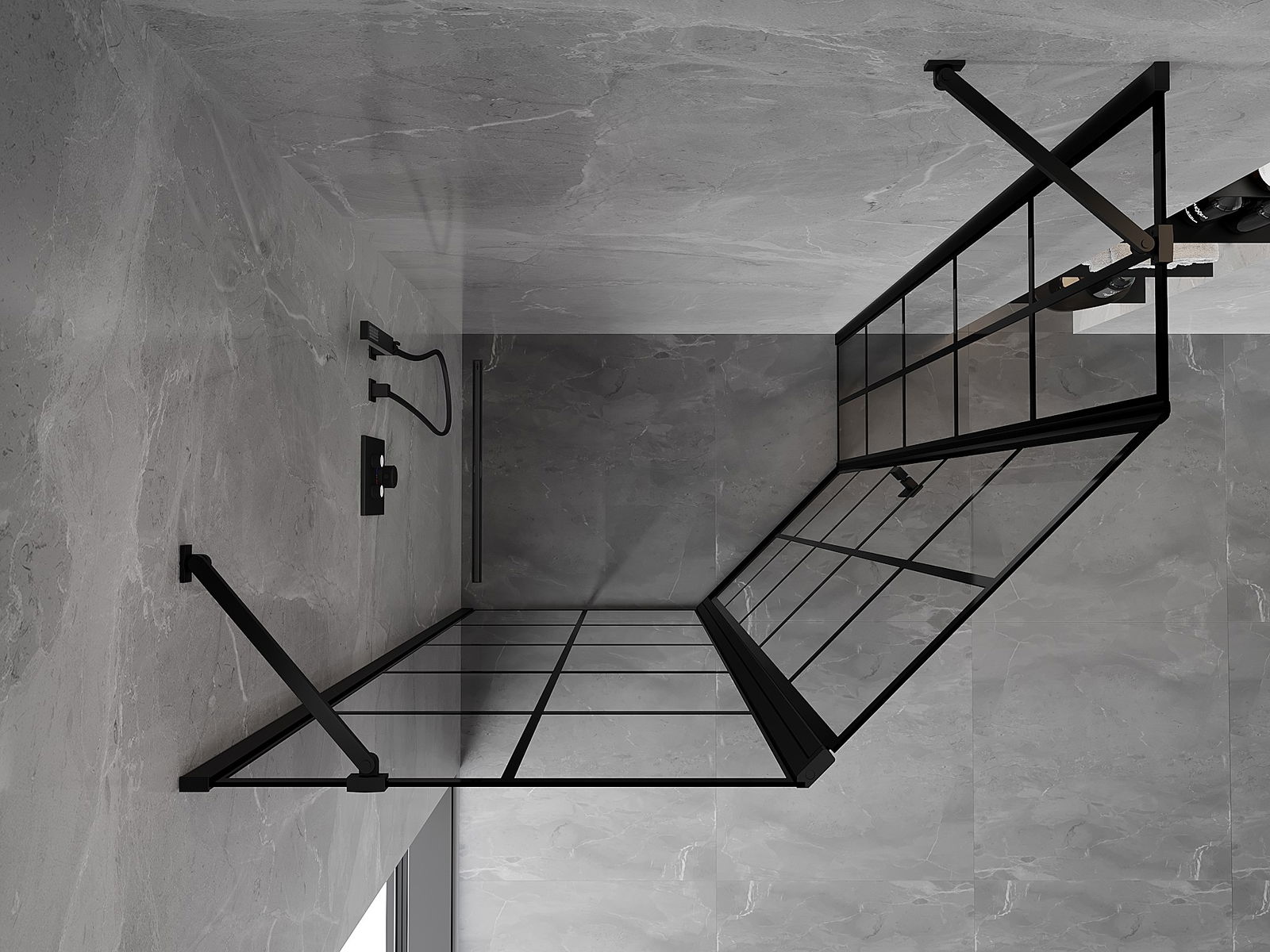 Mexen Mist pentagonal asymmetrical left shower enclosure 100 x 80 cm, black grid, black - 8A8-100-080-70-77-L