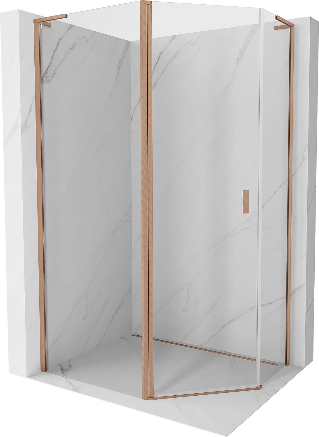 Mexen Mist L pentagonal asymmetrical hinged shower enclosure 90x80 cm, transparent, brushed copper - 8A8L-090-080-65-00