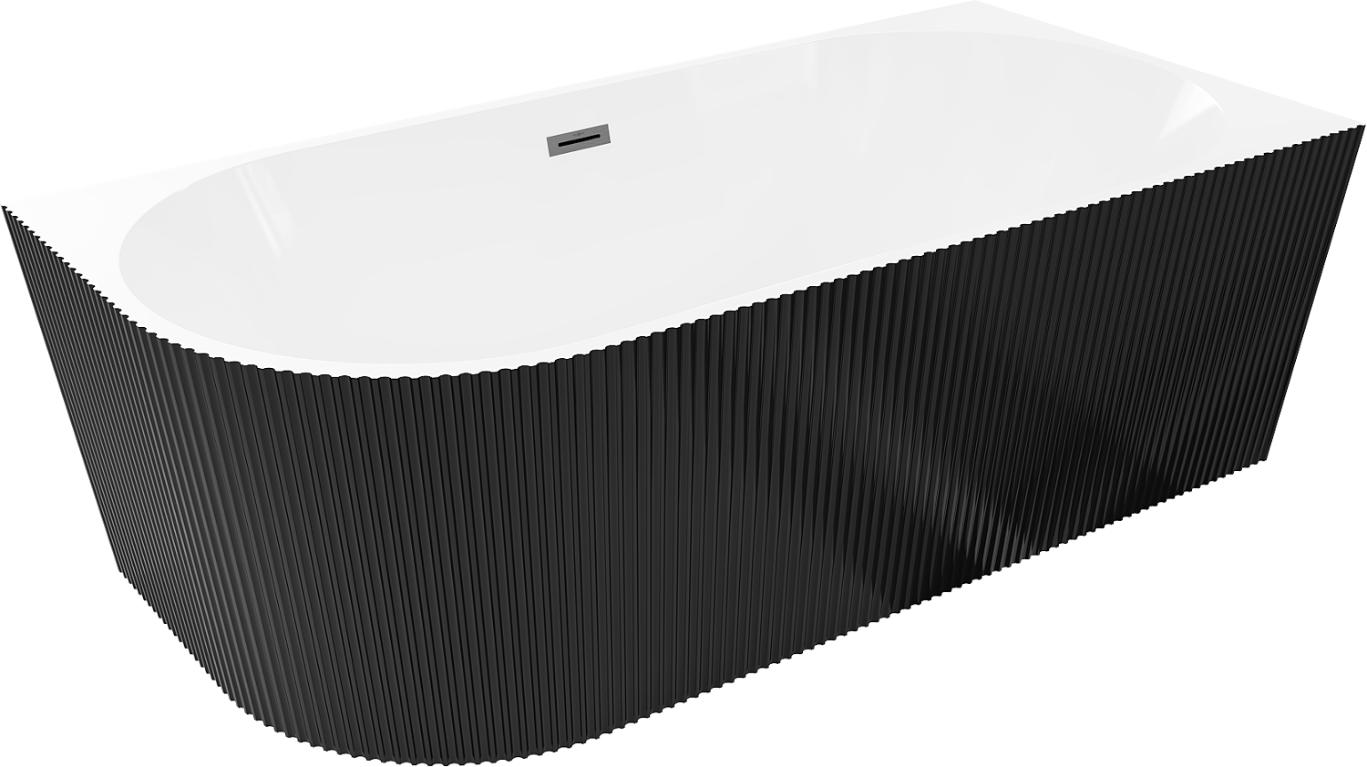 Mexen Silo freestanding corner bathtub right fluted 150 x 75 cm, white/black, overflow gun gray brushed - 52891507575P-66