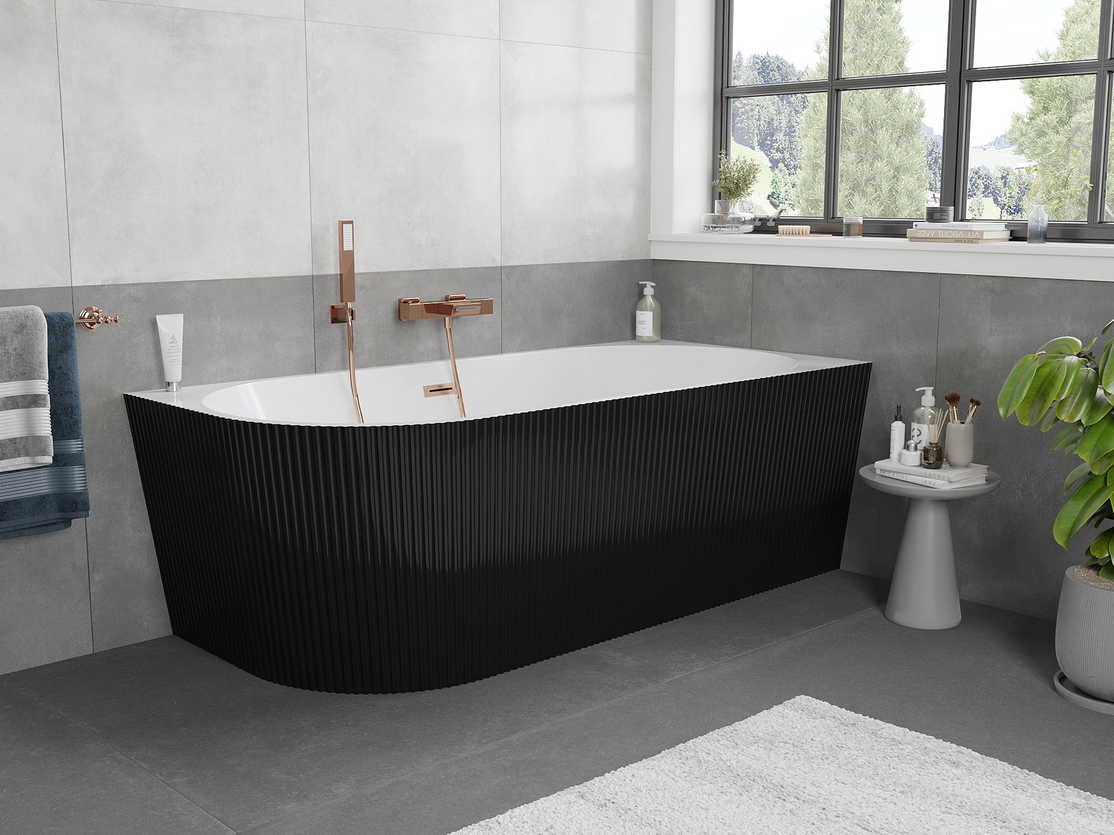 Mexen Silo freestanding corner bathtub right ribbed 170 x 80 cm, white/black, brushed copper overflow - 52891708075P-65