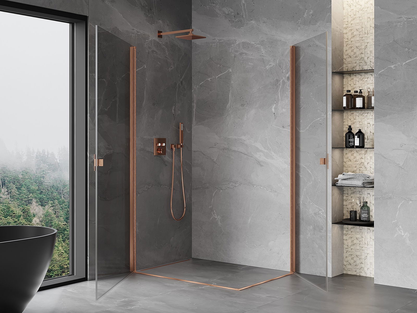 Mexen Mist-B Duo swing shower cabin 100 x 70 cm, transparent, brushed copper - 8A2-100-070-65-00